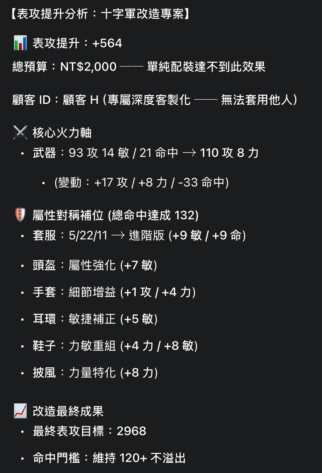 ・包含洗點、命中(打王裝/練功裝)