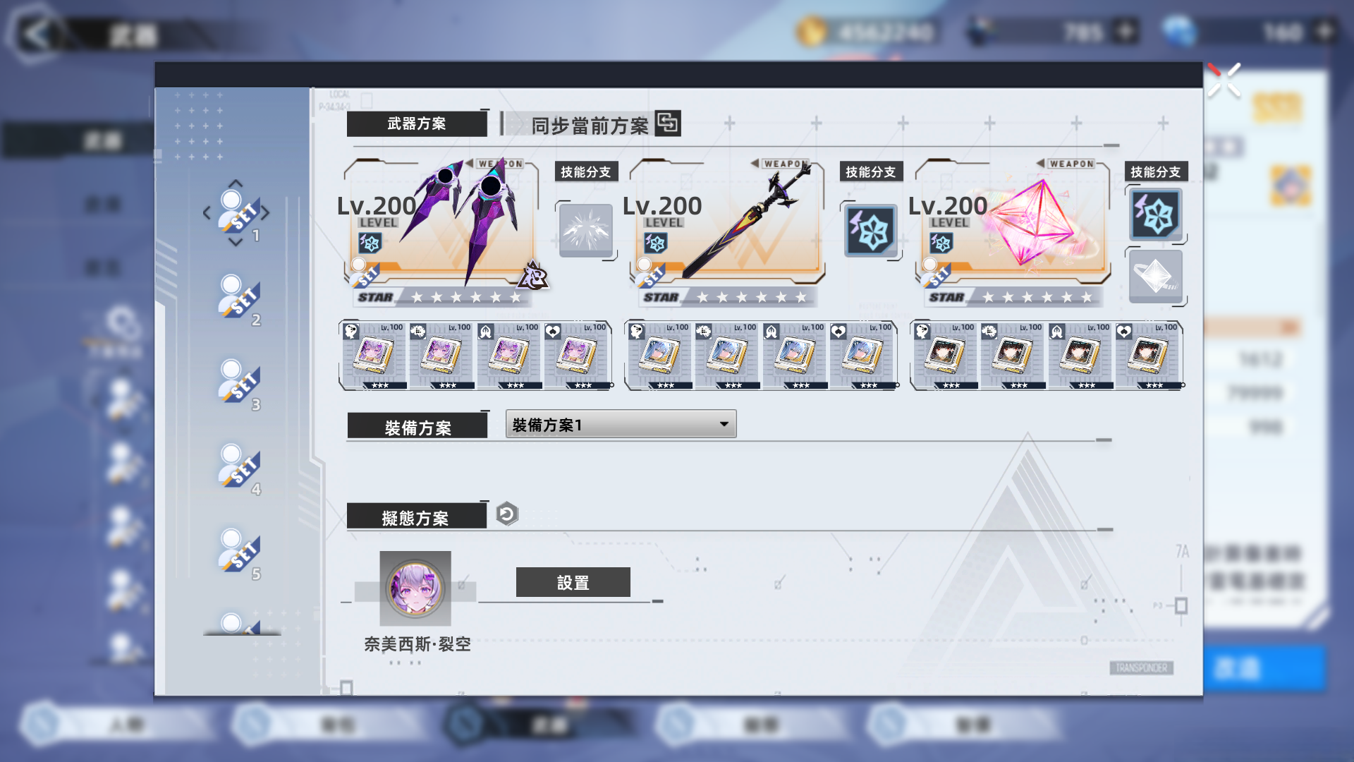 武器意志 : 恩賜+異能 都 6+3 恩賜 替換用意志 沒缺少 3套可 3套零 以及 普池 現在有ˋ用的武器 以ˋ及 部分意志 幾乎都滿