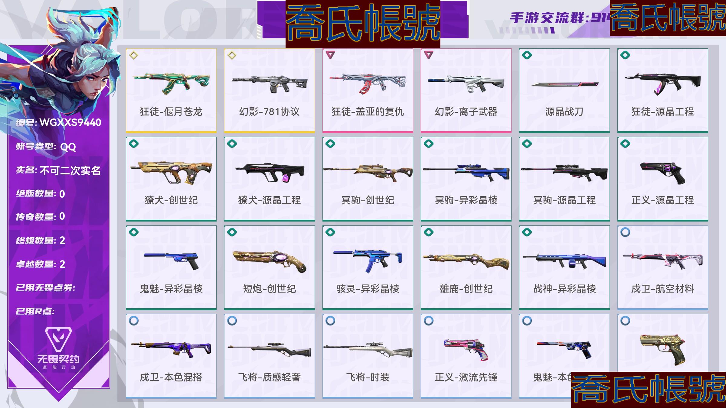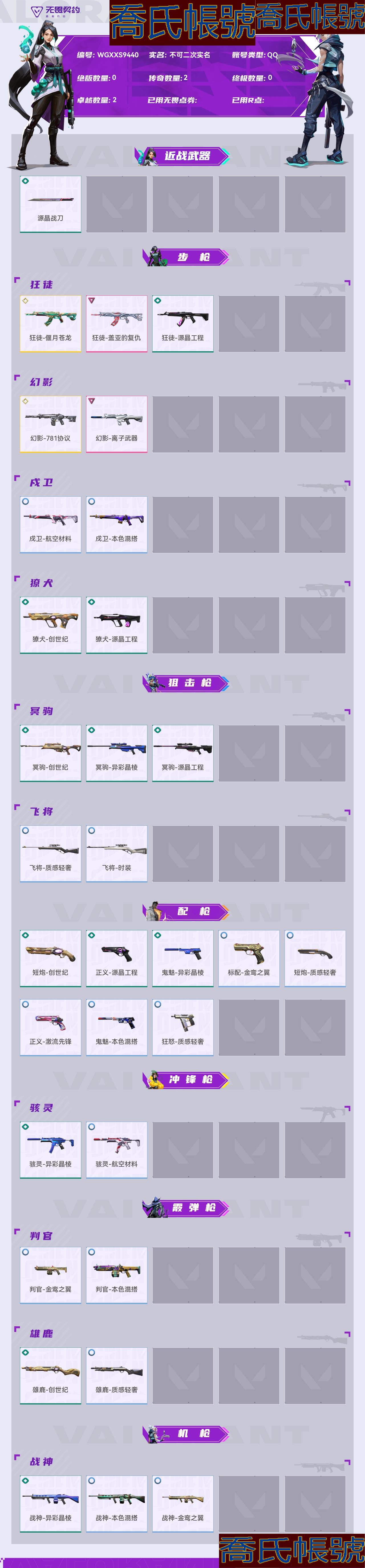 【OBWGXXS944042】Lv103|超凡II, 刀皮數量1,槍皮數量31(絕版0傳奇0終極2卓越2);【刀皮】:近戰武器-源晶戰刀; 【槍皮】:狂徒-偃月蒼龍,幻影-781協議,狂徒-蓋亞的復仇,幻影-離子武器,狂徒-源晶工程,獠犬-創世紀,獠犬-源晶工程,冥駒-創世紀,冥駒-異彩晶稜,冥駒-源晶工程,正義-源晶工程,鬼魅-異彩晶稜,短炮-創世紀,駭靈-異彩晶稜,雄鹿-創世紀,戰神-異彩晶稜,戍衛-航空材料,戍衛-本色混搭,飛將-質感輕奢,飛將-時裝,正義-激流先鋒,鬼魅-本色混搭,標配-金鸞之翼,短炮-質感輕奢,狂怒-質感輕奢,駭靈-航空材料,判官-金鸞之翼,判官-本色混搭,雄鹿-質感輕奢,戰神-本色混搭,戰神-金鸞之翼;【熱門卡面】:創世紀卡面,賢者之淚卡面,裂土之疆卡面,尚勃勒工牌卡面,休息時間幽影卡面,萬聖夜卡面,金鸞之翼卡面,科迪亞鋼鐵卡面,無畏開拓者卡面;【熱門掛飾】:海島假日掛飾,糖果手杖掛飾,燃燒垃圾箱掛飾,魔法小貓掛飾,恐怖蜥蜴掛飾,創世紀掛飾;【熱門噴漆】:禁止雄鹿噴漆,志願者噴漆,拿走我的錢噴漆,夜露思苦噴漆,甜糖麥芬噴漆,食腐鳥噴漆,燃起來了噴漆,芮娜致意噴漆,這就太不行了噴漆,飛天掃帚小貓噴漆,無畏開拓者噴漆;【皮膚可能含有某些特權皮膚,具體以遊戲內實際擁有為準】王者韓信典藏,幾個傳說