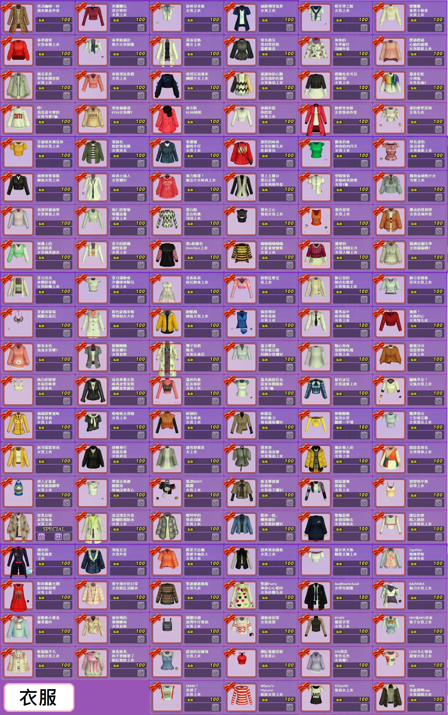 *衣服*商城207個+活動205個=412個