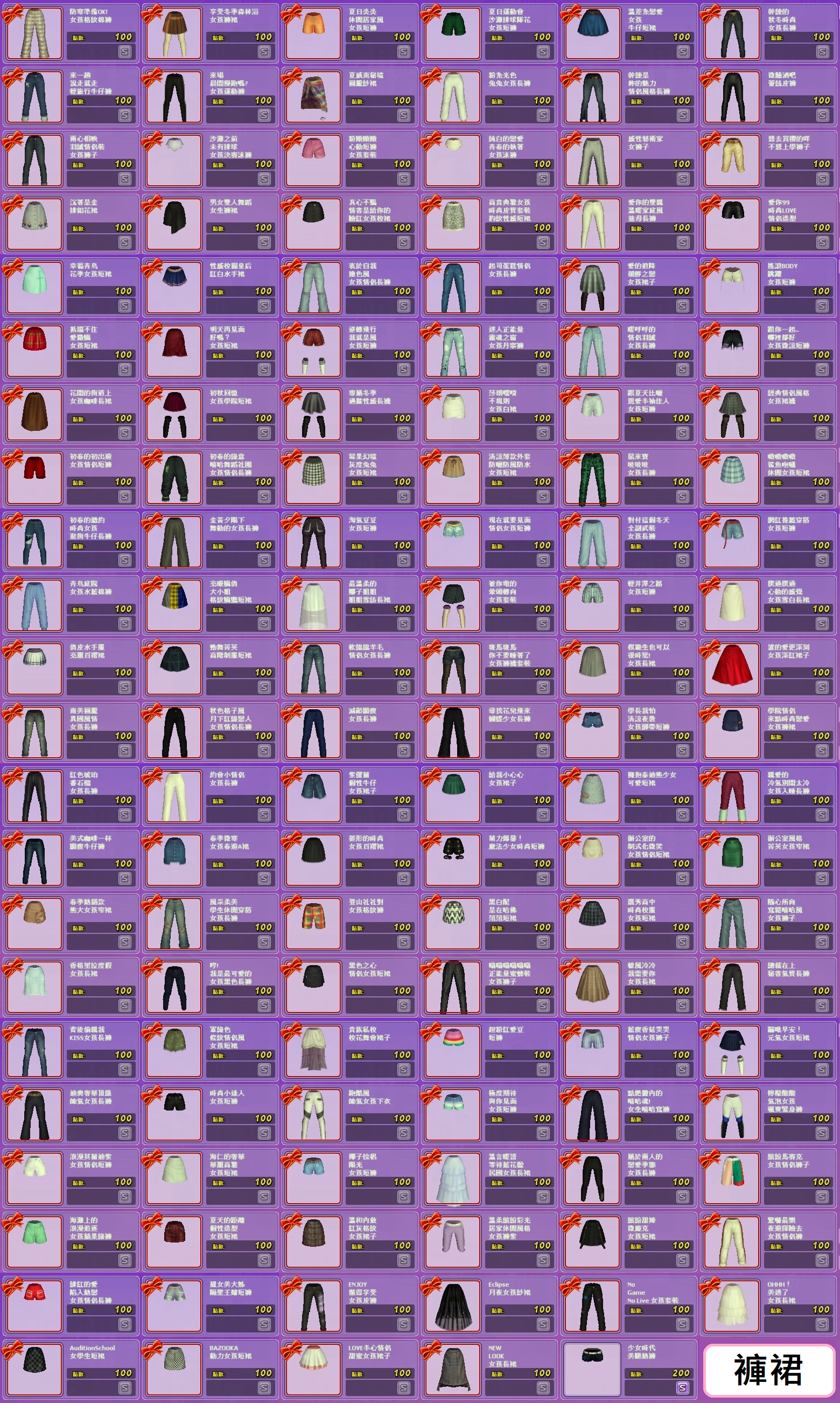 *褲子*商城101個+活動174個=275個