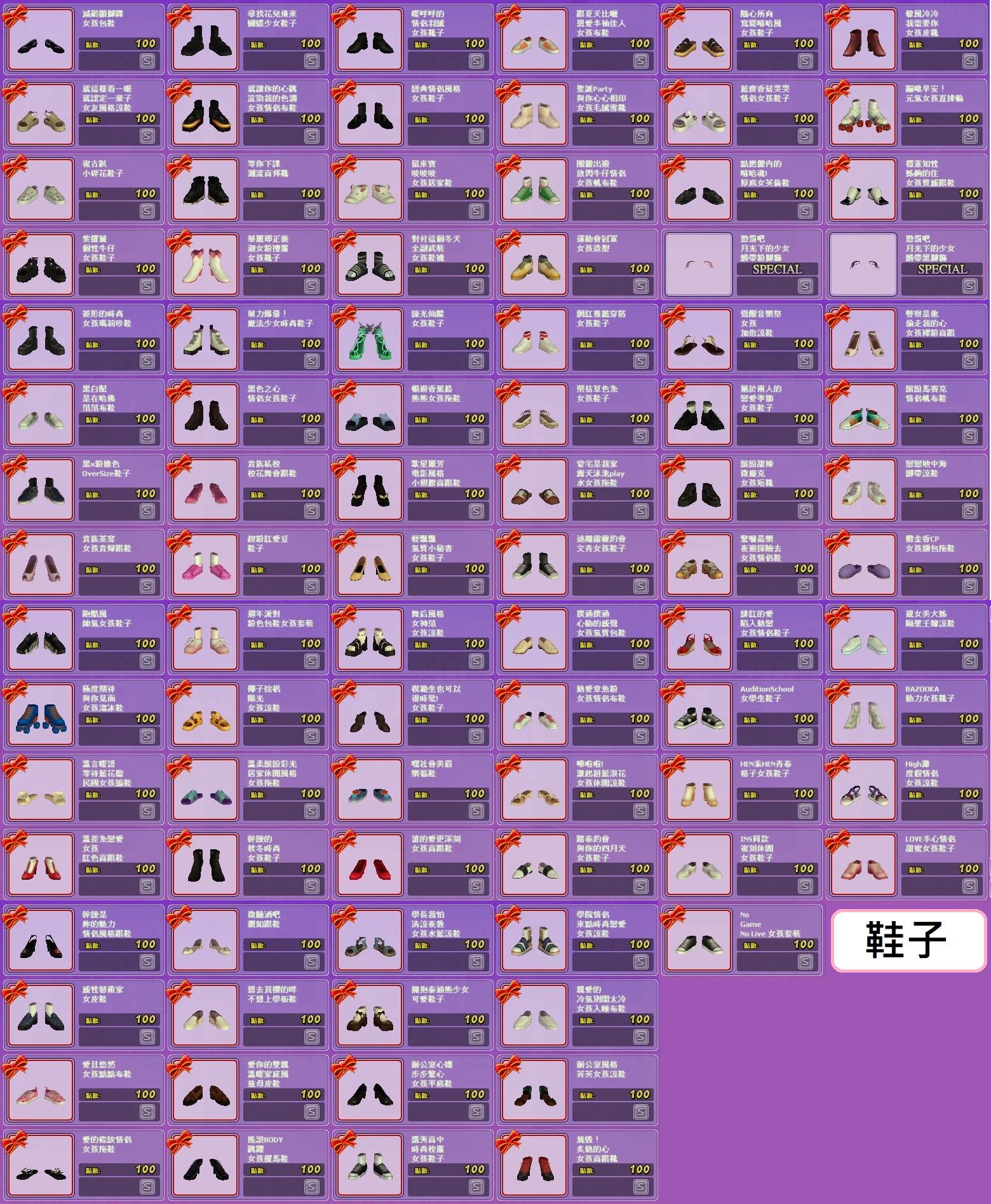 *鞋子*商城87個+活動218個=305個