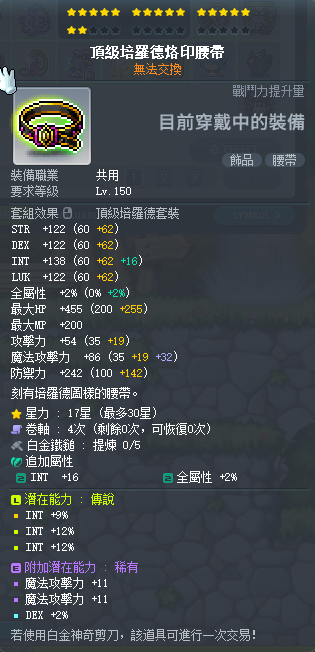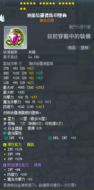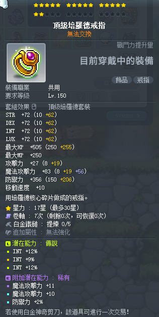 道具 【法師飾品】 33%-36%智力 培羅德飾品整套 大魔 強力的魔性戒指