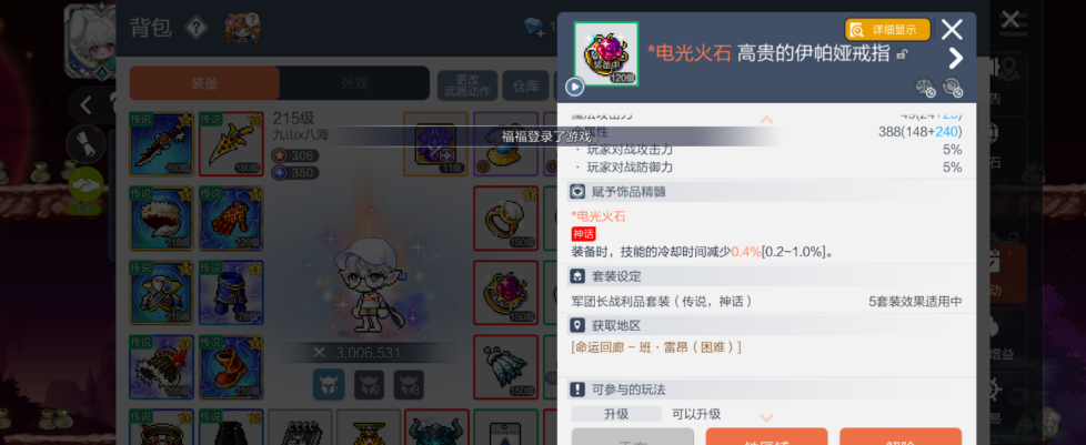 【MPHVL0978】實名情況:可二次實名|有無防沉迷:無防沉迷|伺服器:瑪利亞|職業分類:飛俠|分支職業:俠影|冒險島楓之傳說瑪利亞 227 級上榜幻影。400w 戰力.9 萬主屬10 神話。武器 325 超越。紅副手。裝備基本 7-9 次剪刀核心全 60 級5300 聯盟號上一堆材料時裝上百張綠圖可賣楓幣一套物攻低。10+10 配置上手補門票回 t0 梯隊底子號三無 v。幻影榜上每日穩多滴可查 詳情看圖【蘋果微信】【自主截圖】