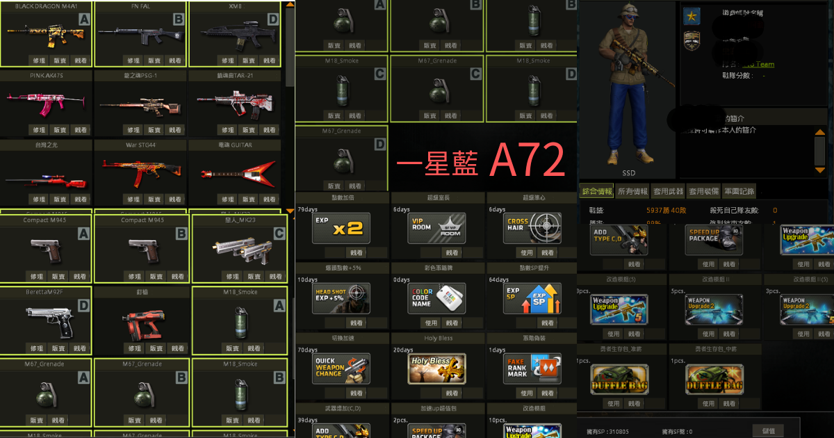 【黑龍m4,粉紅AK,龍魂psg,war stg44,電魂吉他,台灣之光,鎮魂曲】