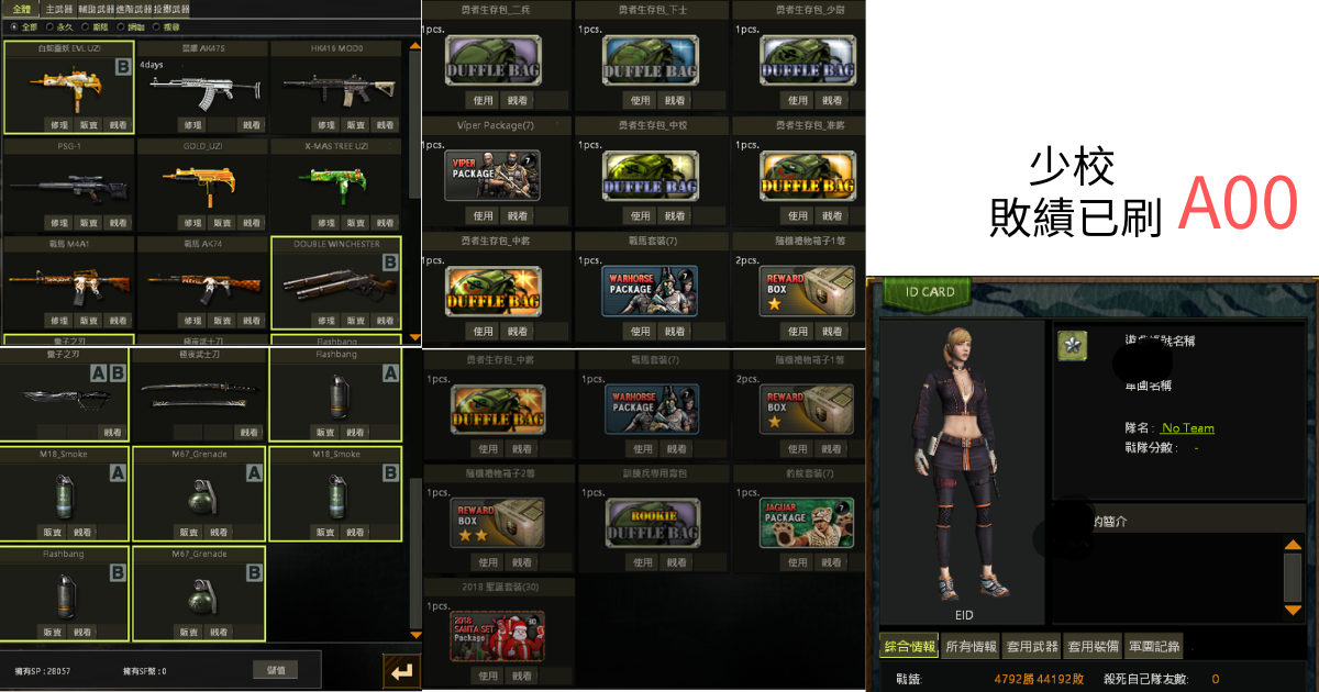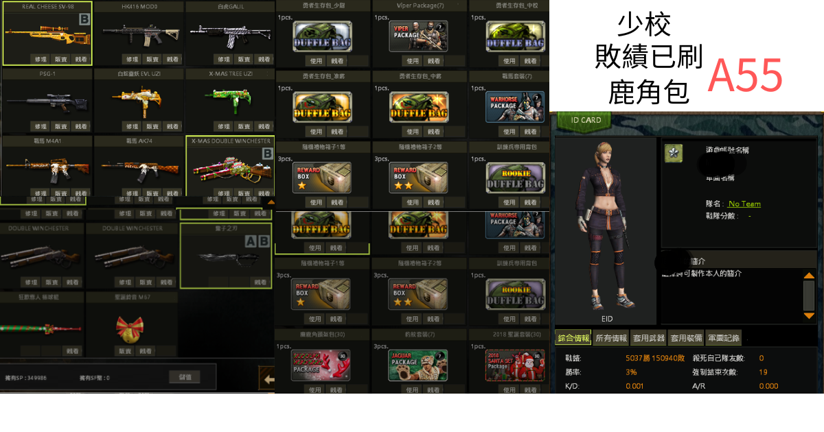 【制服psg,黃金m4,粉紅AK,戰馬m4,戰馬AK,黃金svd,聖誕uzi,白蛇uzi,鹿角包】