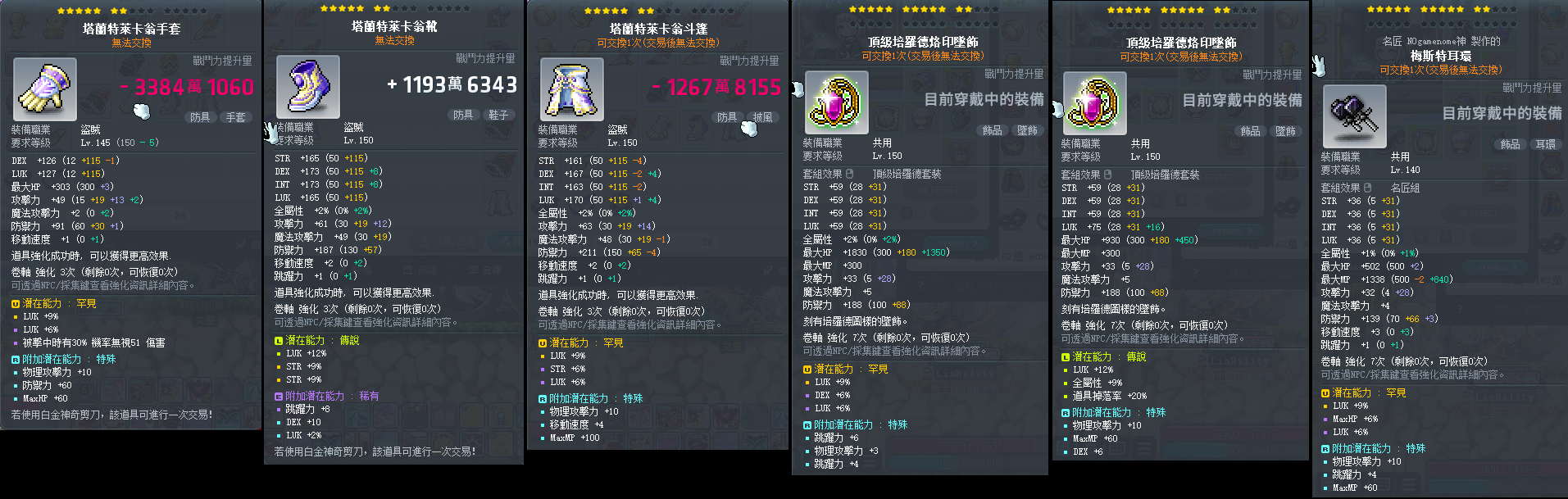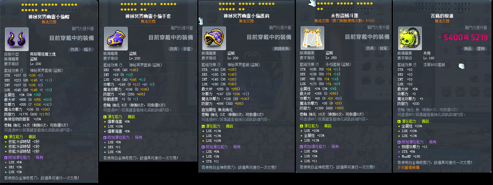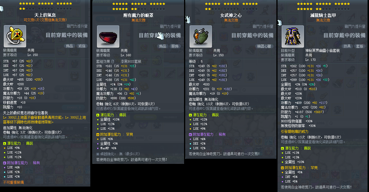 道具 【小資盜賊裝備】 1/22出清 22星神秘.永恆盜賊裝.%幸滅龍天上漆黑眼罩苦痛頂培