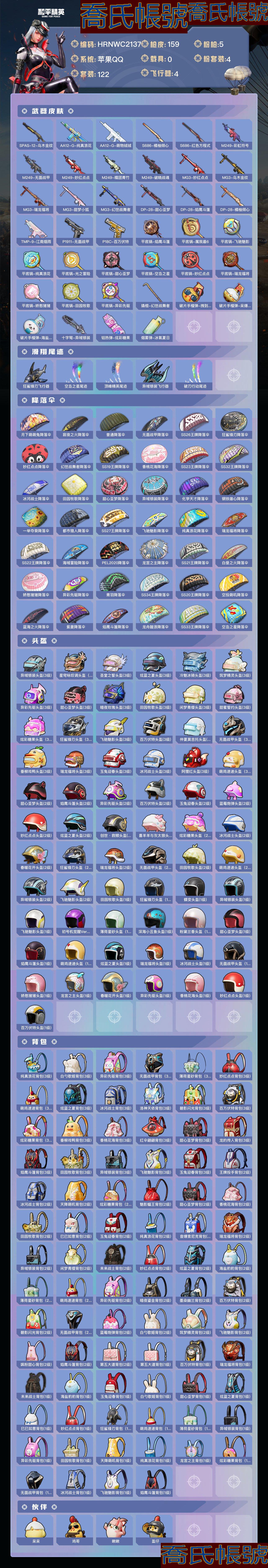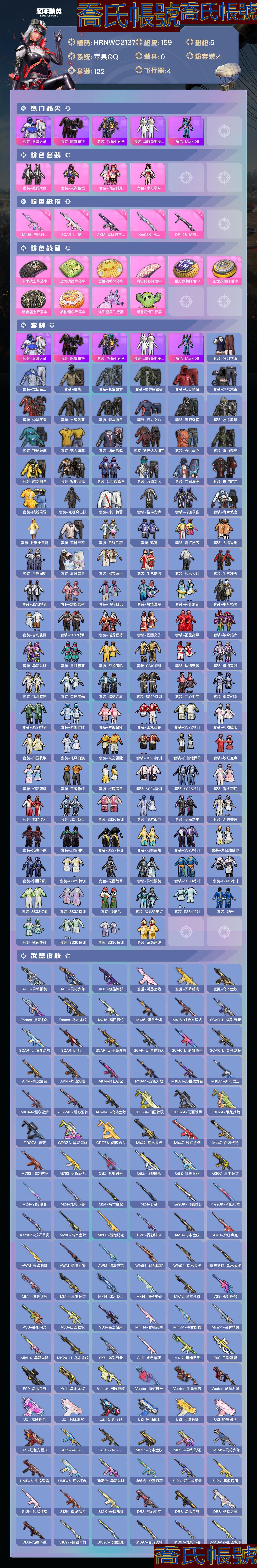【OBHRNWC213742】熱力值:49531,4粉裝,5粉槍,10粉色戰備,122套裝,159槍械,191裝備,7滑翔尾翼,50降落傘;等級:Lv.61 歷史最高段位:超級王牌11星 當前段位:不朽.星鑽Ⅳ;王牌印記12次 卓越印記1次; 【熱門品類】:套裝-浪漫天命,套裝-暗影哥特,套裝-深海小丑魚,套裝-動感兔斯基人偶服,角色-Mark.06;【粉色套裝】:粉裝-數碼大師,粉裝-天禪智恆,粉裝-俏皮狐尾,角色-小可學妹;【粉色槍械】:M416-電玩時刻[5級],SCAR-L-錦繡綿綿[5級],AKM-星際浪客[7級],Kar98K-巳巳如意[5級],DP-28-豹影疾電[5級];【粉色滑翔尾翼】:炫彩糖果飛行器,綠意幻情飛行器;【粉色降落傘】:未來戰士降落傘,恐龍拽拽降落傘,垂柳戲鴨降落傘,颯粉甜心降落傘,百萬伏特降落傘,創世救贖降落傘,暗夜鎏金降落傘,橘柚傾心降落傘;【其他套裝】:套裝-特訓學院,套裝-競技名士,套裝-猛禽,套裝-長空猛禽,套裝-雨林探路者,套裝-旭日情侶,套裝-六六大吉,套裝-灼焰舞者,套裝-水銀刺客,套裝-特戰裝甲,套裝-活力之心,套裝-鷹眼刺客,套裝-冰凍風暴,套裝-神秘領域,套裝-魅力單車,套裝-綺麗塗鴉,套裝-競技達人朋克,套裝-野性戰心,套裝-雪山精英,套裝-酷潮明星,套裝-極地朋克,套裝-幻世戰舞者,套裝-藍調潮人,套裝-弄潮海豚,套裝-青澀時光,套裝-繽紛果語,套裝-龍魂突擊隊,套裝-冰川特警,套裝-格鬥先鋒,套裝-冷血極客,套裝-麻辣教官,套裝-破蛋小黃雞,套裝-軍械專家,套裝-玲瓏飛花,套裝-鶴鳴,套裝-霓虹街區,套裝-大橘為重,套裝-白熊同盟,套裝-夏日音浪,套裝-探寶勇士,套裝-牛氣滿滿,套裝-戰術大師,套裝-牛氣沖天,套裝-SS18特訓,套裝-耀粉歌者,套裝-飛行日記,套裝-熱情海星,套裝-純真浪花,套裝-電音精靈,套裝-吉莉禮服,套裝-SS17特訓,套裝-瑞龍福將,套裝-團圓交子,套裝-福星高照,套裝-繽紛焰火,套裝-異彩先驅,套裝-霓虹極客,套裝-空投萌嘰,套裝-SS19特訓,套裝-濃情蜜辣,套裝-極速競夢,套裝-飛馳魅影,套裝-音速流光,套裝-炫藍之夏,套裝-SS20特訓,套裝-甜心亞夢,套裝-虛音幻奏,套裝-SS21特訓,套裝-萌趣咩咩,套裝-嬌憨豬豬,套裝-玉兔迎春,套裝-SS22特訓,套裝-和煦暖陽,套裝-田園牧歌,套裝-輕風白浪,套裝-光之冒險,套裝-SS23特訓,套裝-白蘭地假日,套裝-妙紅點點,套裝-幻彩翩翩,套裝-王牌教練,套裝-檸萌假日,套裝-SS24特訓,套裝-SS25特訓,套裝-香桃花海,套裝-龍的傳人,套裝-冰河戰士,套裝-SS26特訓,套裝-漫遊都市,套裝-空島之星,套裝-無暇誓言,套裝-焰鷹斗篷,套裝-幻羽潛行,套裝-SS27特訓,套裝-老實芭蕉,套裝-SS28特訓,套裝-海鹽綿綿冰,套裝-創世幻影,套裝-SS29特訓,角色-無面戰甲,套裝-異域銀裝,套裝-SS30特訓,套裝-SS31特訓,套裝-SS33特訓,套裝-SS32特訓,套裝-頂瓜瓜,套裝-星影讚美詩,套裝-SS34特訓,套裝-遊樂,套裝-薄荷星砂,套裝-SS35特訓,套裝-SS36特訓,套裝-萌雞速遞;其他槍械:AUG-異域銀裝,AUG-靈符少年,AUG-紫晶流影,蜜獾-嬌憨豬豬,蜜獾-天降萌嘰,蜜獾-烏木金紋,Famas-霓彩脈衝,Famas-烏木金紋,M416-糯團青竹,M416-藍色火焰,M416-紅色方程式,SCAR-L-炫彩節奏,SCAR-L-海鹽豹豹,SCAR-L-紅色方程式,SCAR-L-玉兔迎春,SCAR-L-星途旅人,SCAR-L-彩虹符號,SCAR-L-黃金龍骨,AKM-虎虎生威,AKM-灼熱熔岩,AKM-霓虹街區,M16A4-藍色火焰,M16A4-幻世戰舞者,M16A4-冰河戰士,M16A4-甜心亞夢,AC-VAL-甜心亞夢,AC-VAL-烏木金紋,GROZA-田園牧歌,GROZA-無面戰甲,GROZA-恐龍拽拽,GROZA-影襲,GROZA-異彩先驅,GROZA-酷泡奶龍,Mk47-烏木金紋,Mk47-妙紅點點,Mk47-百萬伏特,M762-瑞龍福將,M762-天降萌嘰,QBZ-彩虹符號,QBZ-飛馳魅影,QBZ-純真浪花,G36C-烏木金紋,M24-幻彩電音,M24-炫彩節奏,M24-烏木金紋,M24-影襲,Kar98K-飛馳魅影,Kar98K-彩虹符號,Kar98K-炫彩節奏,M200-烏木金紋,M200-酷泡奶龍,SVD-霓彩脈衝,AMR-烏木金紋,AMR-妙紅點點,AWM-天降萌嘰,AWM-焰鷹斗篷,AWM-純真浪花,Win94-瑞龍福將,Win94-烏木金紋,莫辛納甘-烏木金紋,Mk14-童趣迷兔,Mk14-烏木金紋,Mk14-冰河戰士,Mk14-薄荷星砂,MK12-烏木金紋,VSS-彩虹符號,VSS-碧影閃光,VSS-田園牧歌,VSS-星之彼岸,Mini14-香桃花海,Mini14-雞智如我,Mini14-築夢精靈,Mini14-異彩先驅,MK20-H-烏木金紋,SKS-炫彩節奏,SLR-嬌憨豬豬,M417-玩趣呆呆,P90-飛馳魅影,P90-烏木金紋,野牛-烏木金紋,Vector-田園牧歌,Vector-彩虹符號,Vector-生命誓言,Vector-焰鷹斗篷,UZI-炫彩糖果,UZI-啾咪啾咪,UZI-幻影飛狐,UZI-冰河戰士,UZI-天降萌嘰,UZI-嬌憨豬豬,UZI-紅色方程式,AKS-74U-雞智如我,AKS-74U-烏木金紋,MP5K-烏木金紋,MP5K-異彩先驅,UMP45-靈符少年,UMP45-生命誓言,UMP45-海鹽豹豹,湯姆遜-異彩先驅,湯姆遜-純真浪花,S12K-幻世戰舞者,S12K-暖熊萌萌,S12K-嬌憨豬豬,S12K-瑞龍福將,S12K-垂柳戲鴨,DBS-甜心亞夢,DBS-烏木金紋,DBS-聖堂之誓,DBS-焰鷹斗篷,S1897-糯團青竹,S1897-飛馳魅影,S1897-百萬伏特,S1897-炫彩節奏,SPAS-12-田園牧歌,SPAS-12-烏木金紋,AA12-G-純真浪花,AA12-G-萌物絨絨,S686-橘柚傾心,S686-紅色方程式,M249-彩虹符號,M249-無面戰甲,M249-妙紅點點,M249-糯團青竹,M249-破曉戰魂,MG3-妙紅點點,MG3-烏木金紋,MG3-瑞龍福將,MG3-甜夢小狐,MG3-幻世戰舞者,DP-28-甜心亞夢,DP-28-焰鷹斗篷,DP-28-橘柚傾心,TMP-9-江南煙雨,P1911-無面戰甲,P18C-百萬伏特,平底鍋-焰鷹斗篷,平底鍋-屬我最6,平底鍋-飛馳魅影,平底鍋-純真浪花,平底鍋-光之冒險,平底鍋-甜心亞夢,平底鍋-空島之星,平底鍋-妙紅點點,平底鍋-瑞龍福將,平底鍋-嬌憨豬豬,平底鍋-田園牧歌,平底鍋-異彩先驅,撬棍-幻世戰舞者,破片手榴彈-拽到爆炸,破片手榴彈-呆爆全場,破