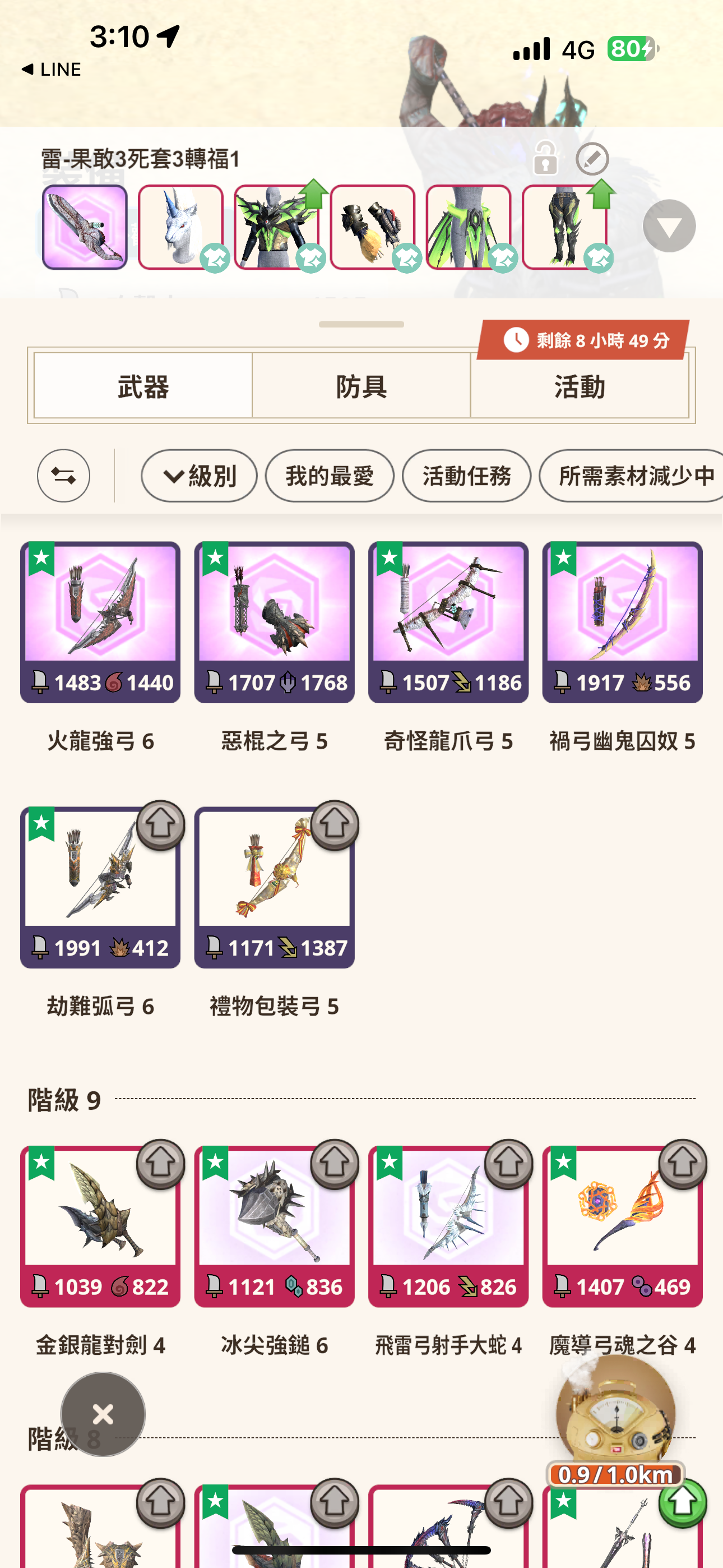 眠斬套裝飄逸煉金完成一擊必殺,大劍、弓負會心套裝也煉金完成,萬用怨虎輕弩