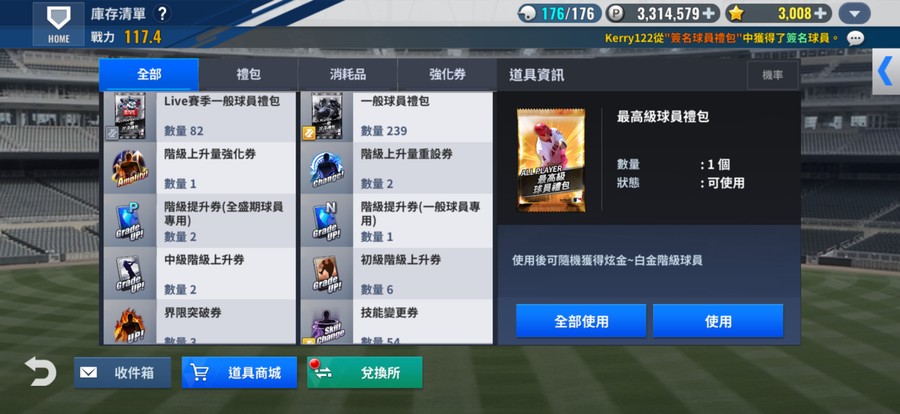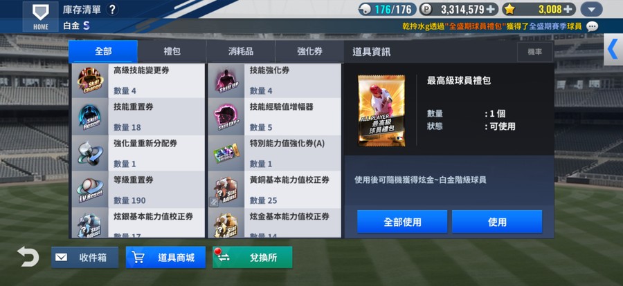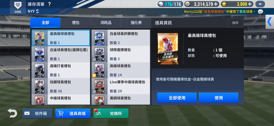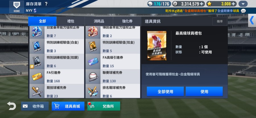 自玩號 9頂簽 2頂傳 鐵馬壞球333 全壘打跟壞球白金教 迪馬喬精準7點 閃電合力7點 可議