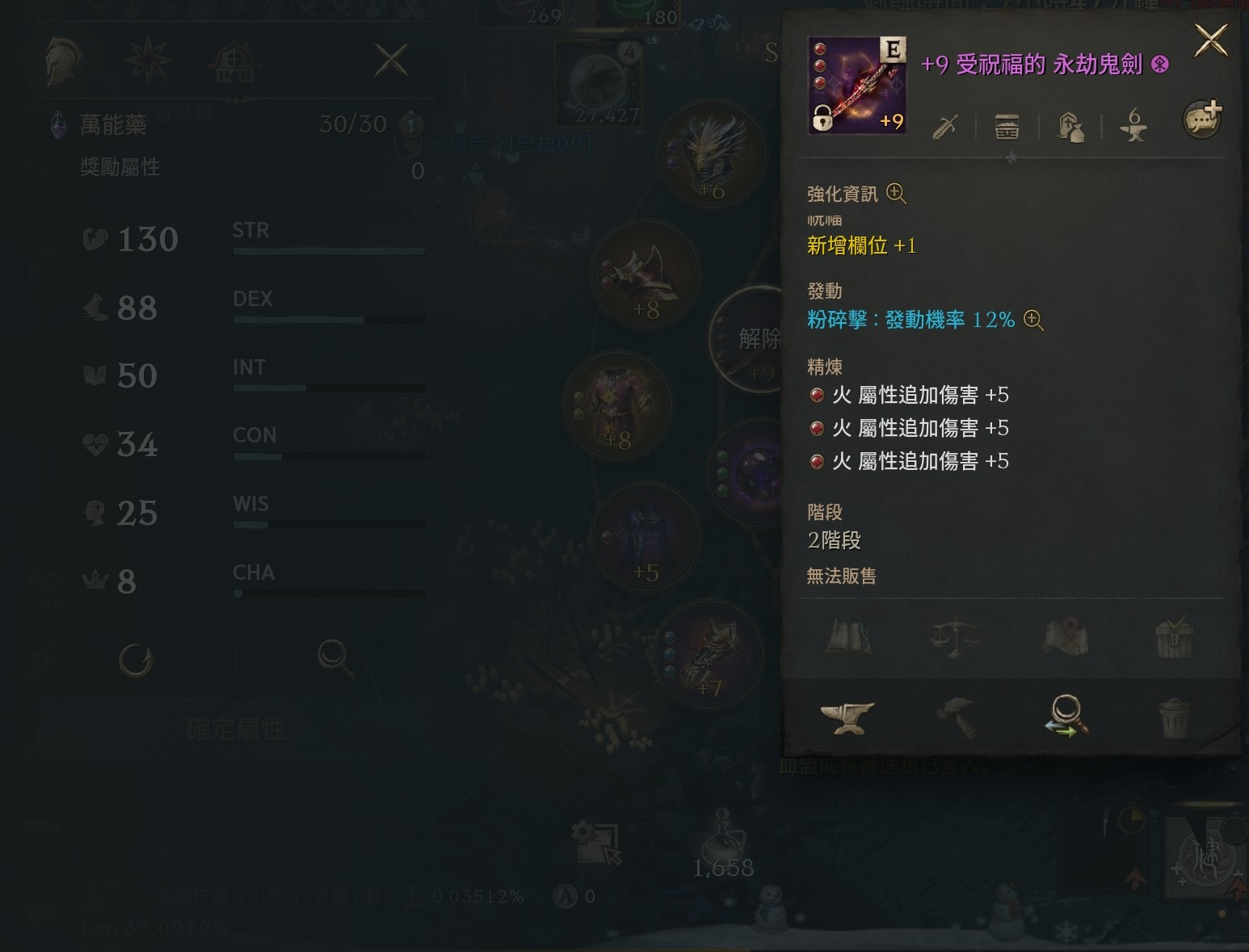 【徽章】:+10盟勇猛(紫)、+10盟徽章-守護(紫)、+10血盟-智慧(紫)