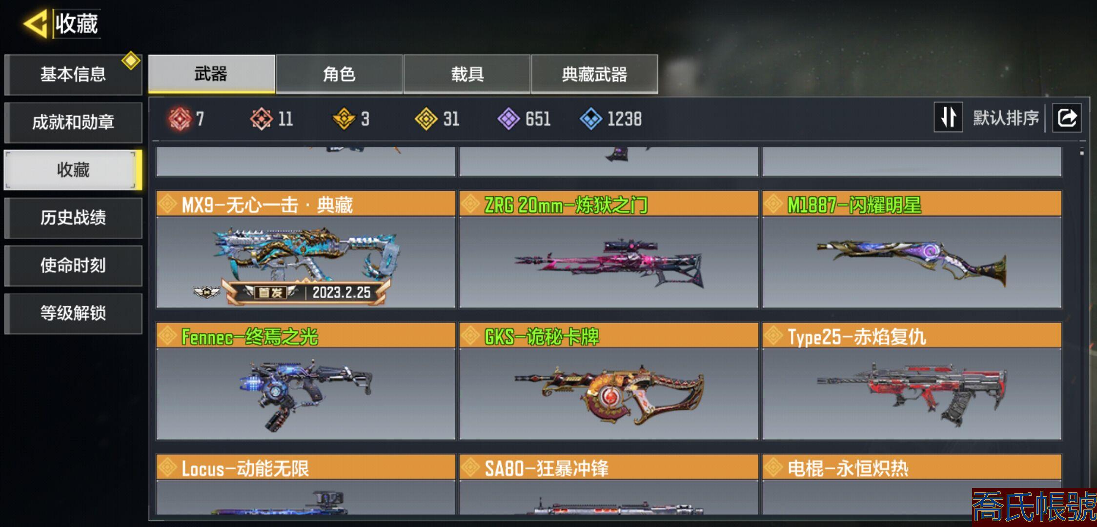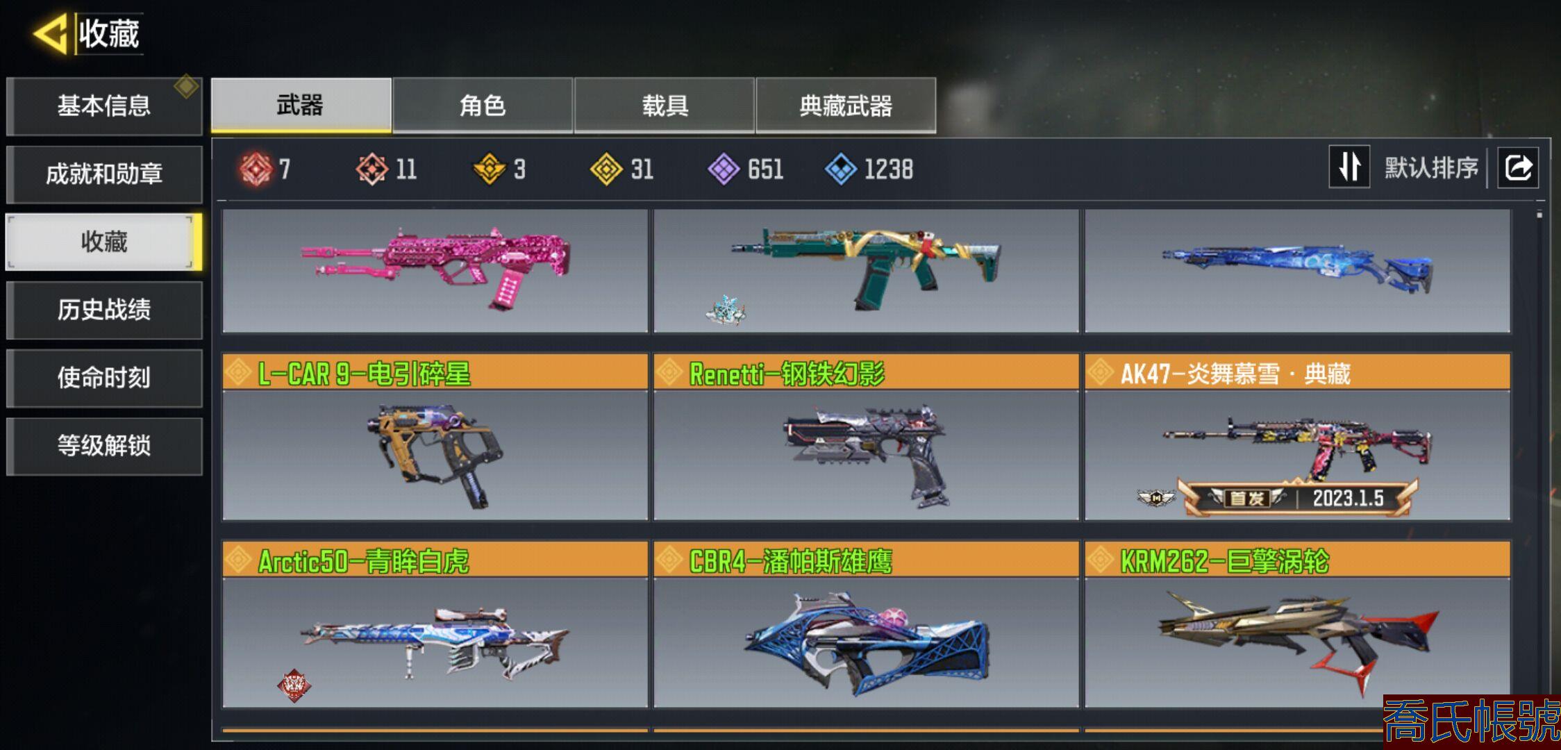 【OBSKOJC594242】11神話武器,3典藏武器,31傳說武器,3神話角色,0傳說角色,0傳說載具,典藏武器:MX9-無心一擊·典藏,AK47-炎舞慕雪·典藏,Argus-天宮救令·典藏,19-無心-擊·典藏,神話武器:USS9-煥光躍遷,DLQ33-紅蓮天誅,Oden-神聖懲戒,EM2-蒼穹,Kilo141-暗夜奏鳴曲,Type19-丹青萬壑,AMR-亞特蘭蒂斯,AK117-熔岩,Krig6-冰霜巨龍,Holger26-黑暗曙光,AK47-三重幻境,傳說武器:SA80-狂暴衝鋒,GKS-詭秘卡牌,飛翼浮游炮-V高達,M4-皇家黑魂,ZRG20mm-煉獄之門,SPR208-斗轉星移,蝴蝶刀-雷光焰影,Locus-動能無限,AK117-炫彩冬日,Renetti-鋼鐵幻影,DLQ33-狂熱祈願,MX9-無心一擊·典藏,3-暗影榮光,LCAR9-電引碎星,終焉之光,M1887-閃耀明星,AN94-毀滅浪潮,6-甜心誘惑,電棍-永恆熾熱,KRM262-巨擎渦輪,CBR4-潘帕斯雄鷹,Argus-天宮救令·典藏,19-無心-擊·典藏,Arctic50-青眸白虎,56-迴音律動,Type25-赤焰復仇,AK47-火箭炮,RPO--路悠揚,AR1-星彩樂手,SKS-光之神域,AK47-炎舞慕雪·典藏,DL033-狂熱祈願,AKS74U-神燈靈願,傳說角色:索菲亞-叛逆騎士,斯-最終護衛,倪克斯-流行天后;【道具展示僅為截圖時所擁有內容,具體以實際遊戲內為準】