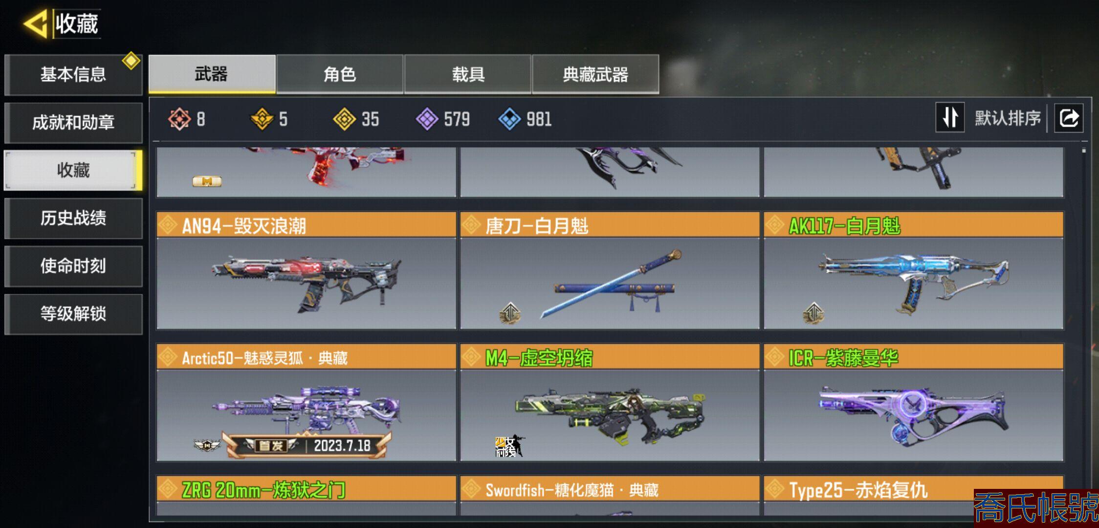 【OBSKOJC318942】8神話武器,5典藏武器,35傳說武器,0神話角色,2傳說角色,0傳說載具,典藏武器:Arctic50-魅惑靈狐·典藏,Chopper-地獄獵犬·典藏·典藏,6-翎雀泣·典藏,HVK30-街機霸王·典藏,Swordfish-糖化魔貓·典藏,神話武器:USS9-煥光躍遷,Kilo141-暗夜奏鳴曲,CX-9-希爾芙的庇佑,FFAR1-無境空刃,Type19-丹青萬壑,SMG5-潮海汐月,AK117-熔岩,IP-幽冥花海,傳說武器:033-狂熱祈願,唐刀-白月魁,Chopper-地獄獵犬·典藏·典藏,L-CAR9-電引碎星,CBR4-凡此過往,OTs9-深淵業火,M4-皇家黑魂,AK117-白月魁,HVK30-街機霸王·典藏,PKM-共生體,Groza-流光寶瓶,CUS-緋紅貓爪,ZRG20mm-煉獄之門,M13-暗影榮光,Arctic50-魅惑靈狐·典藏,M4-虛空坍縮,Krig6-蒼天之劍,6-翎雀泣·典藏,ASVAL-虛相鏈鎖,AN94-毀滅浪潮,M1887-閃耀明星,電棍-永恆熾熱,Man0War-獄海焰火,FFAR1-星彩樂手,56-迴音律動,ICR-紫藤曼華,-緋紅貓爪,Type25-赤焰復仇,衝鋒手槍-相位破碎,AK47-火箭炮,翼浮游炮-v高達,D--路悠揚,LW3-Tundra-離散單元,Fennec-無畏,Swordfish-糖化魔貓·典藏,AKS74U-神燈靈願,神話角色:索菲亞-礪鋒的希冀,黑暗守護者-奇點;【道具展示僅為截圖時所擁有內容,具體以實際遊戲內為準】二次要等幾天,大手子號該有的都有