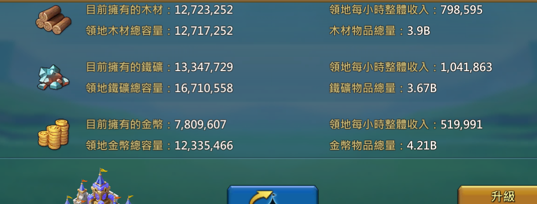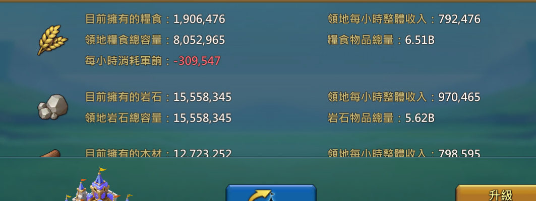 ☆背包資源:糧8B、石6B、木5B、鐵4B、金4.2B