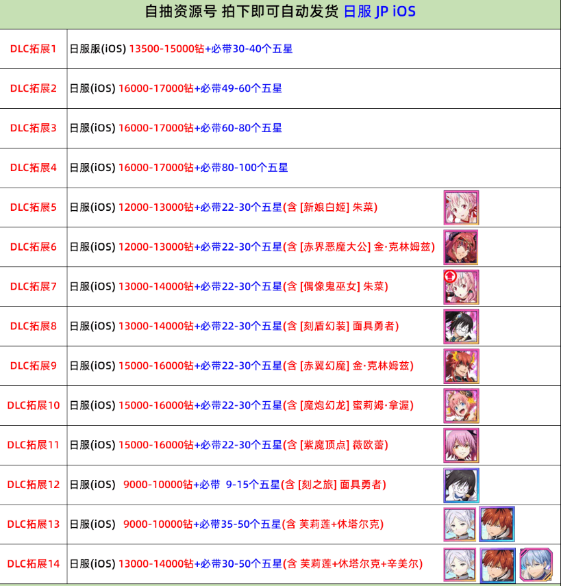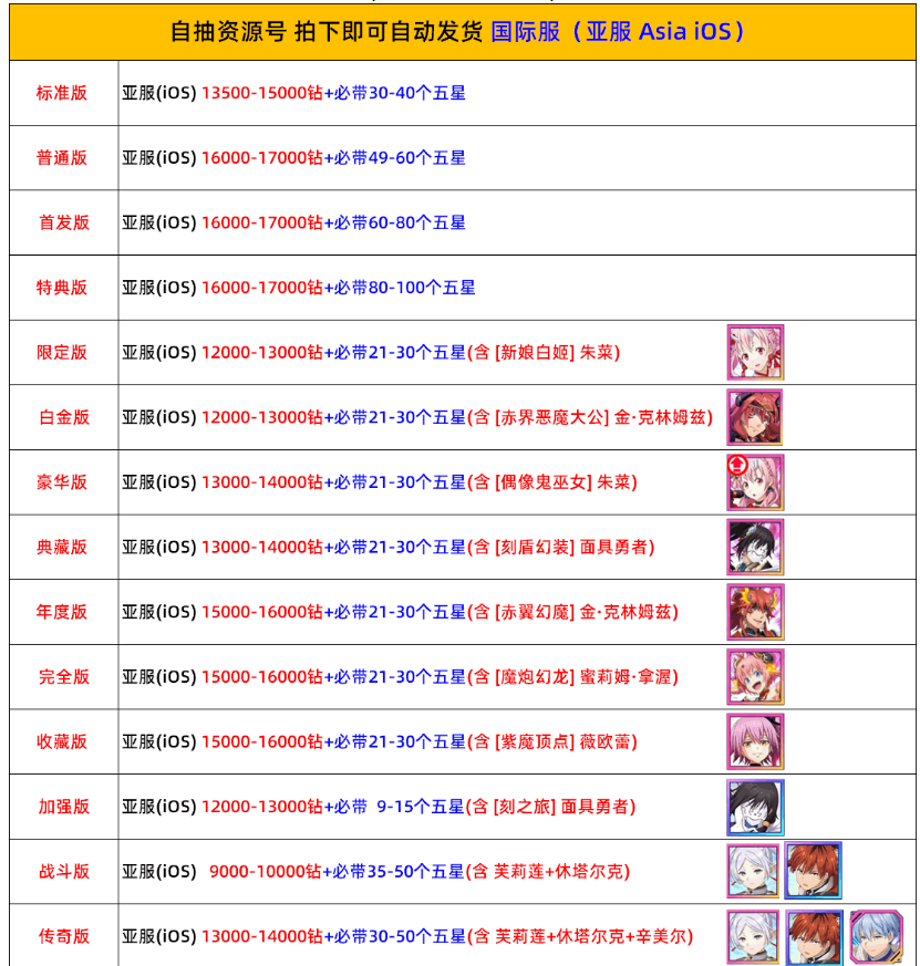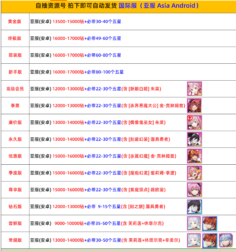 下單前先看清楚安卓或者是IOS 區服 買後不退