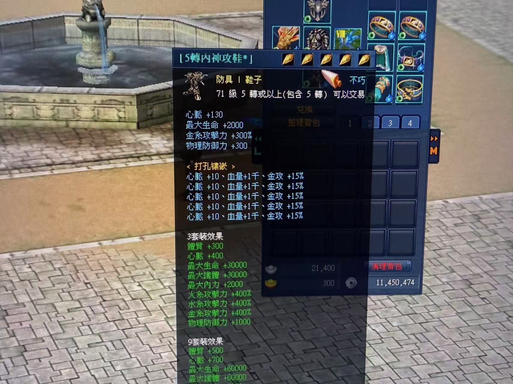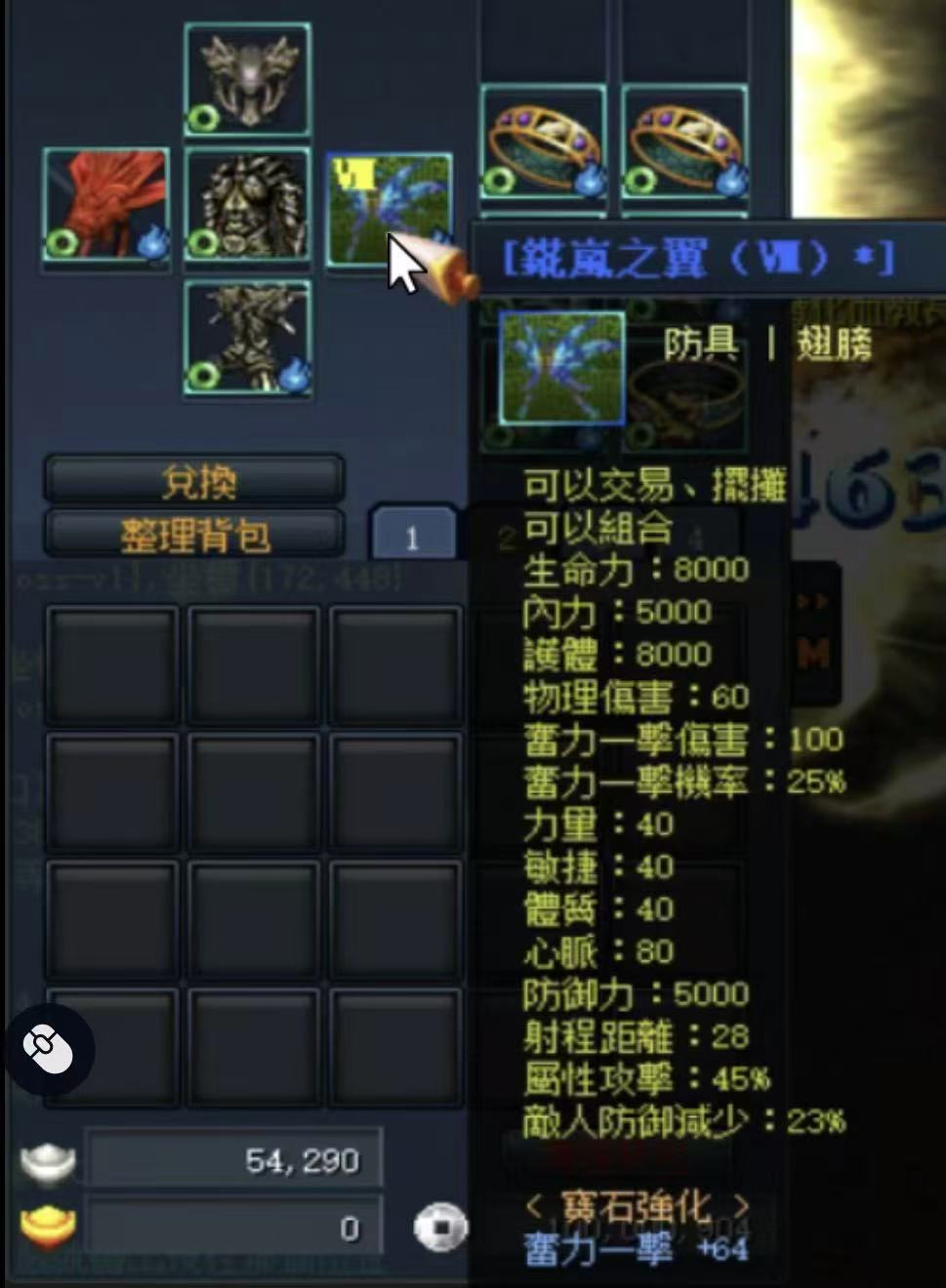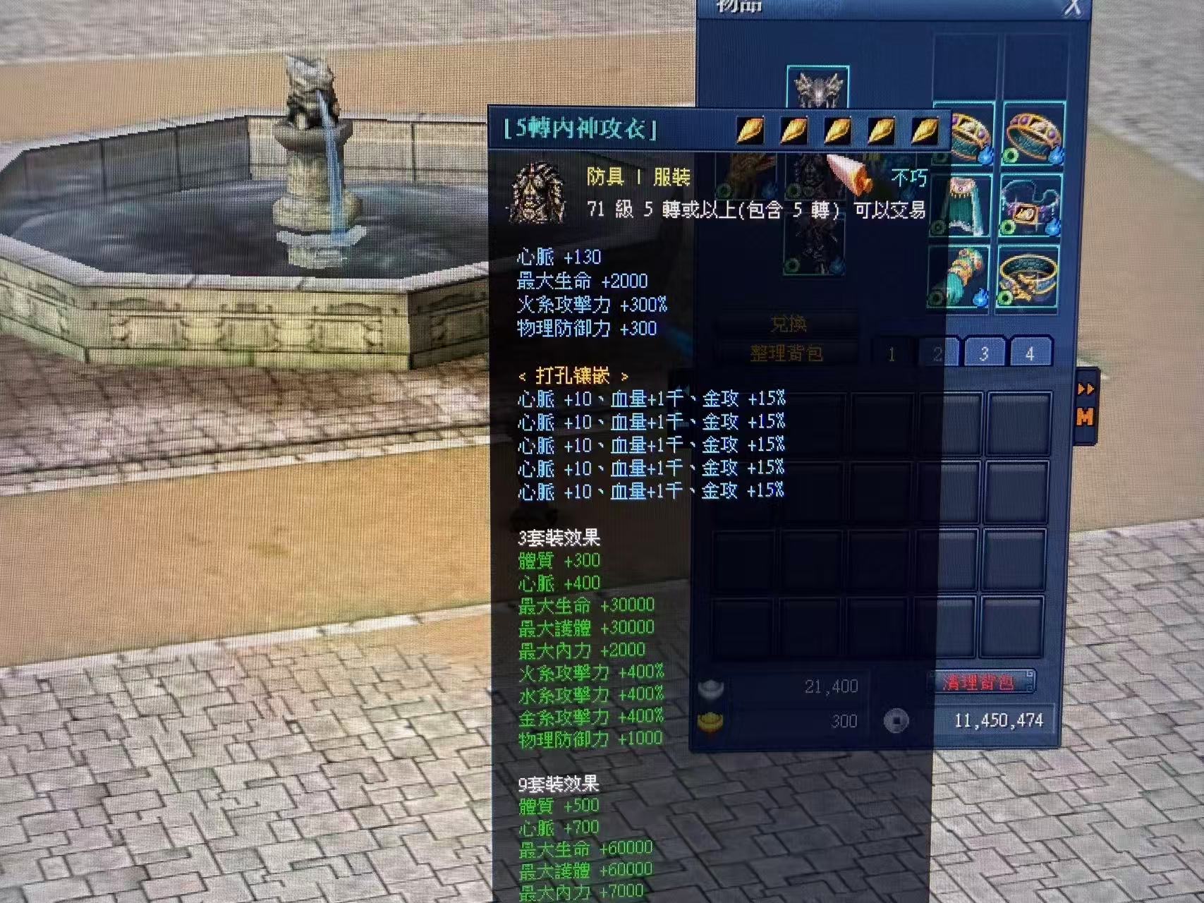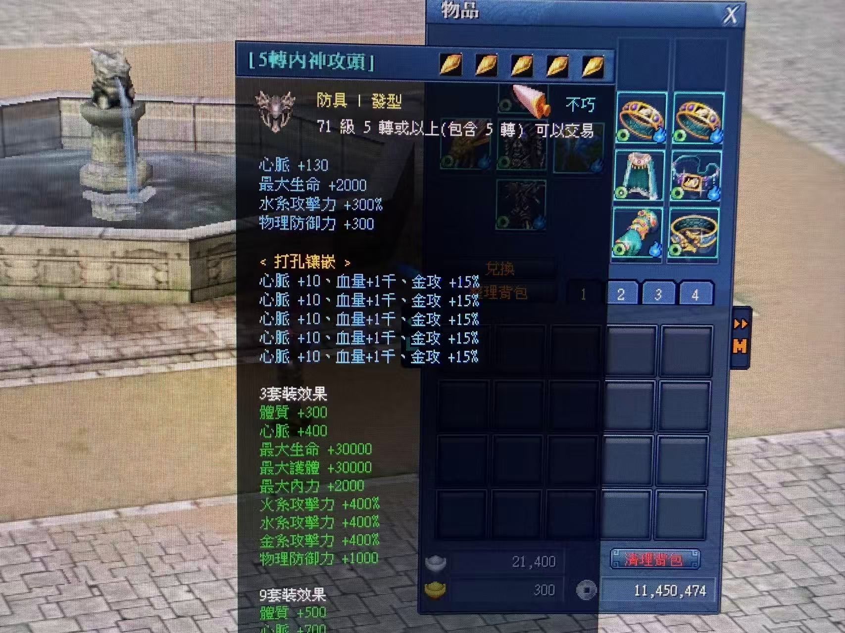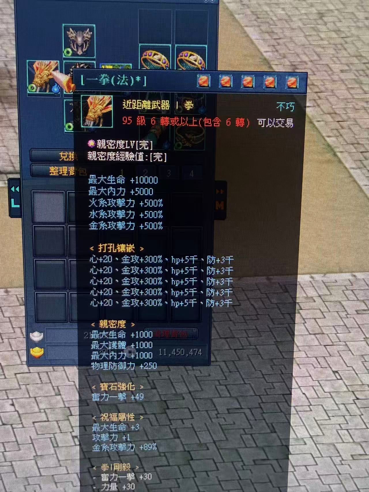 五轉內神套 全合3屬石 武器合:4屬石 武功皆混元 還有聖變幻武功% 在含8階翅