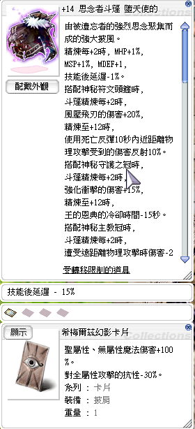 +12 思念者斗篷 墮天使的 (希梅爾茲幻影卡片) 技能後延遲-15%
