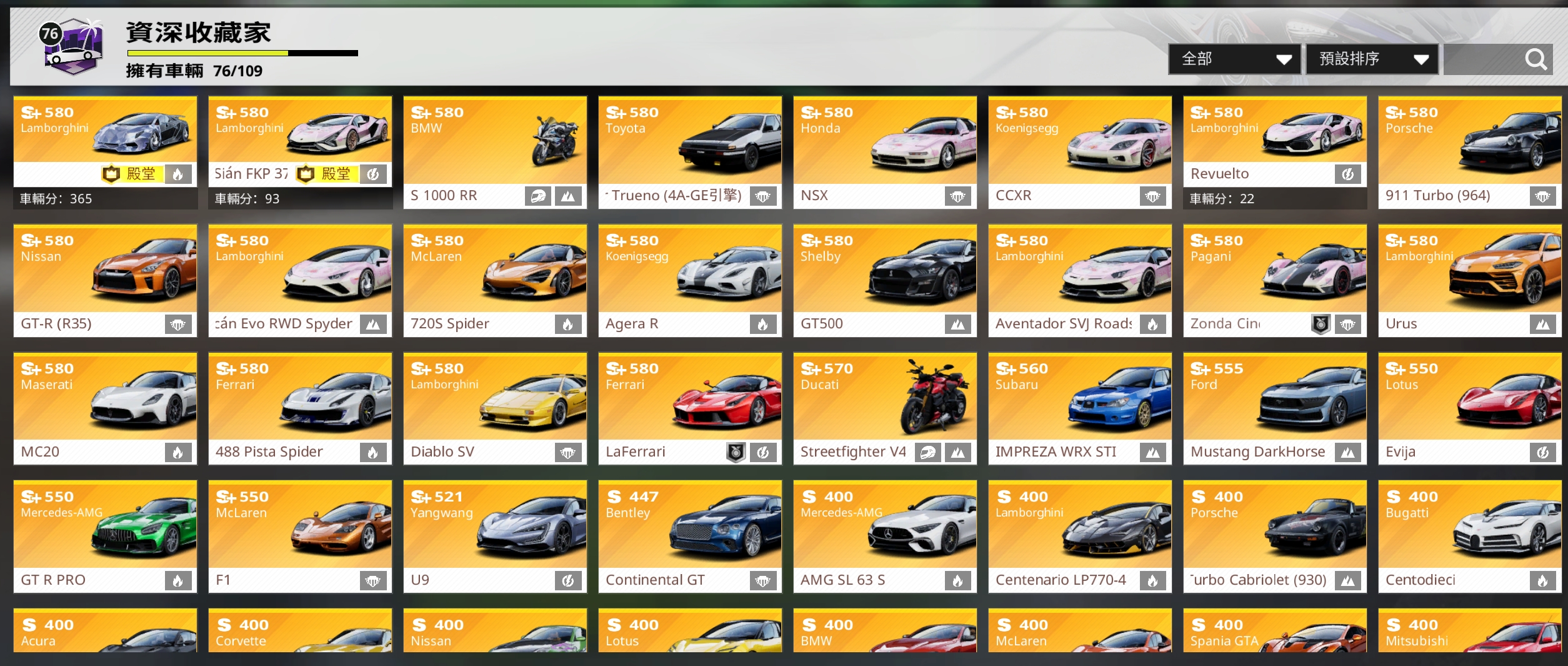 通行證車 : 720s. GT R PRO.CCXR.Diablo sv