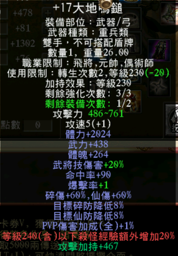 道具 +17大地鳴錘 已兵甲