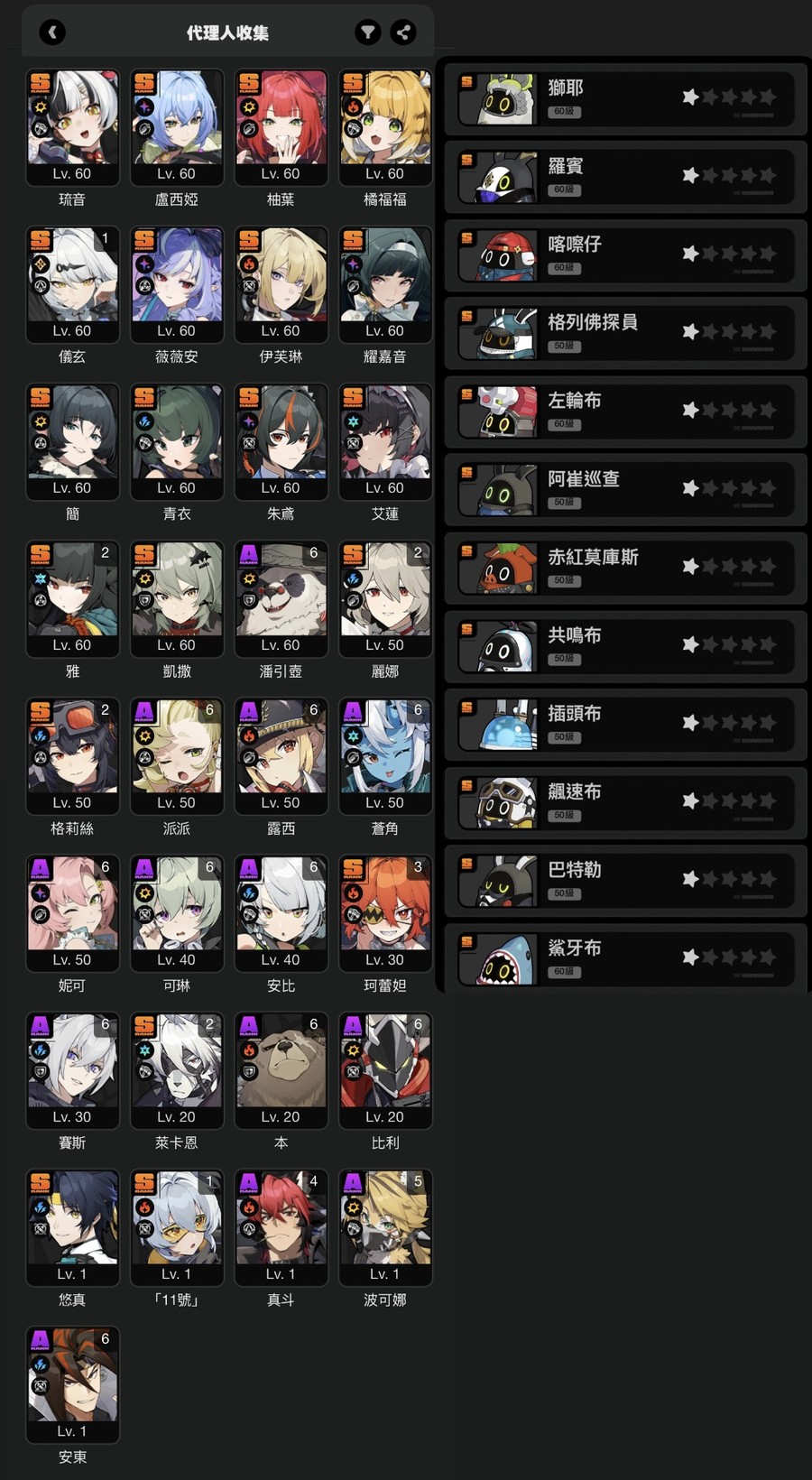 多限定角色,人權角色都有命座,角色都有練度基本上每期危局跟防衛戰都能打滿,本期危局9星、防衛戰全S