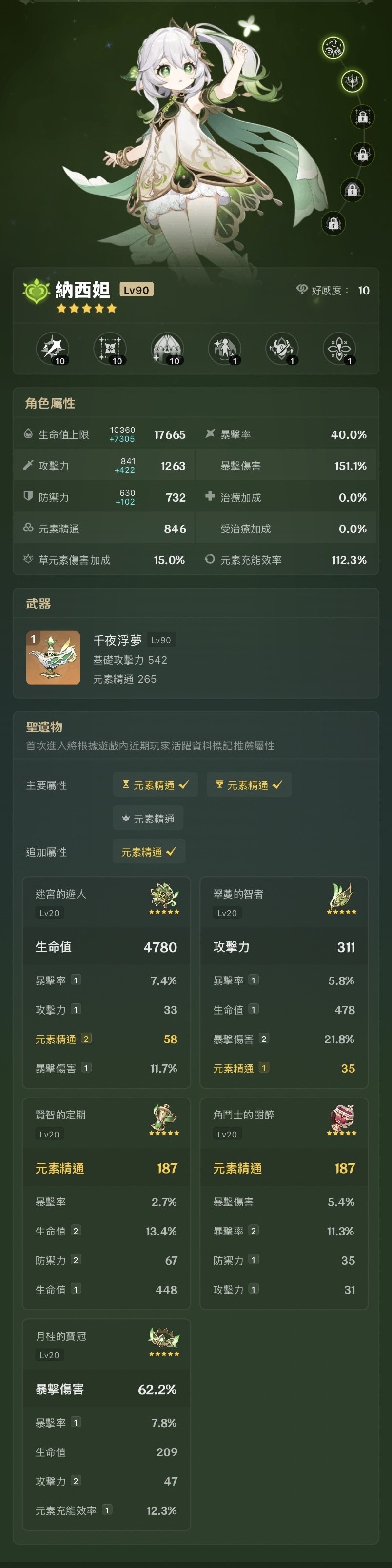 練度和聖遺物都很不錯,基本上深淵都能打滿。