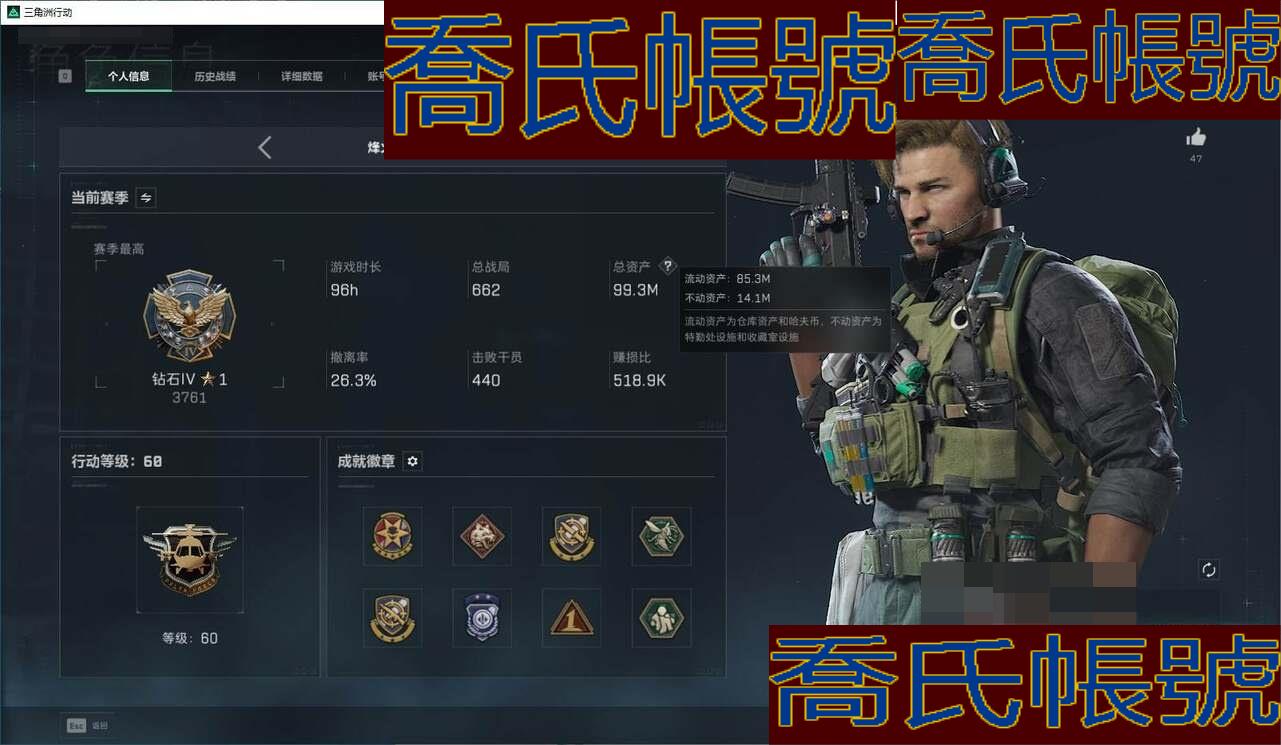 【OBSUUHK901042】總資產:99M,哈夫幣:3065W,武器皮膚:66,烽火60級:戰場50級:【安全箱】S7頂級安全箱;【特勤處等級】倉庫LV.7,靶場LV.5,訓練中心LV.6;【幹員皮膚】紅狼蝕金玫瑰,深藍不破誓約,紅狼電鋸驚魂,露娜金牌射手;【近戰武器】近戰武器-信條,近戰武器-黑鷹;【步槍皮膚】M4A1突擊步槍-蝕金玫瑰,M4A1突擊步槍-阿米婭,ASh-12戰鬥步槍-鵝鴨殺,SG552突擊步槍-運動員,SCAR-H戰鬥步槍-啟航,G3戰鬥步槍-騎士,CAR-15突擊步槍-阿米婭,ASVal突擊步槍-蛇年祥瑞,騰龍突擊步槍-撈點薯條,K437突擊步槍-幾何解構,KC17突擊步槍-電鋸驚魂,SR-25射手步槍-水墨雲圖,AKM突擊步槍-林中獵手,QBZ95-1突擊步槍-曙光,ASh-12戰鬥步槍-刀鋒,ASh-12戰鬥步槍-無極限,AUG突擊步槍-蝮蛇,M7戰鬥步槍-百步穿楊,SG552突擊步槍-深海恐懼,SCAR-H戰鬥步槍-囚徒,G3戰鬥步槍-戰場英傑,G3戰鬥步槍-流沙送葬,PTR-32突擊步槍-工業狂潮,ASVal突擊步槍-百步穿楊,騰龍突擊步槍-獵鱷行動,K437突擊步槍-守護者;【衝鋒槍皮膚】勇士衝鋒槍-能天使-午夜郵差,QCQ171衝鋒槍-鵝鴨殺,MP5衝鋒槍-深海恐懼,MP5衝鋒槍-戰術競備,P90衝鋒槍-暗影獵手,Vector衝鋒槍-阿薩拉文明,Vector衝鋒槍-獵鱷行動,Vector衝鋒槍-百步穿楊,SR-3M緊湊突擊步槍-英雄,SR-3M緊湊突擊步槍-戰術競備,勇士衝鋒槍-深海恐懼,勇士衝鋒槍-工業狂潮,MP7衝鋒槍-守護者;【射手步槍皮膚】Mini-14射手步槍-守護者,SVD狙擊步槍-阿薩拉工藝,SVD狙擊步槍-暗夜獵手,SR-25射手步槍-戰場英傑;【狙擊步槍皮膚】AWM狙擊步槍-撈點薯條,SV-98狙擊步槍-林中獵手,SV-98狙擊步槍-囚徒,SV-98狙擊步槍-獵鱷行動,M700狙擊步槍-競技風,M700狙擊步槍-蝮蛇,M700狙擊步槍-百步穿楊,M700狙擊步槍-哈夫克警備,AWM狙擊步槍-無極限,AWM狙擊步槍-流沙送葬;【霰彈槍皮膚】M1014霰彈槍-林中獵手,S12K霰彈槍-曙光;【輕機槍皮膚】M250通用機槍-騎士之心,QJB201輕機槍-鵝鴨殺,PKM通用機槍-蝮蛇,M250通用機槍-囚徒,PKM通用機槍-英雄;【手槍皮膚】93R-撈點薯條,QSZ92G-風林火山,沙漠之鷹-曙光,93R-博士;(資訊源於賣家釋出,實際資訊以驗號為準)【QQ登入】****/可二次/QQ區【總資產:99.3M+S7**安全箱3x3+近戰信條+紅狼蝕金玫瑰+紅狼電鋸驚魂+非洲之心+55發aw】/烽火等級:60級/全面戰場:50級/純幣:30654K/三角券加幣:804(三角幣10+三角券794)【S7**安全箱3x3】【近戰-信條】【紅狼-蝕金玫瑰】紅狼-電鋸驚魂/深藍-不破誓約/露娜-金牌射手S6/S7通行證/部門:22222/特勤等級(技術中心3級/