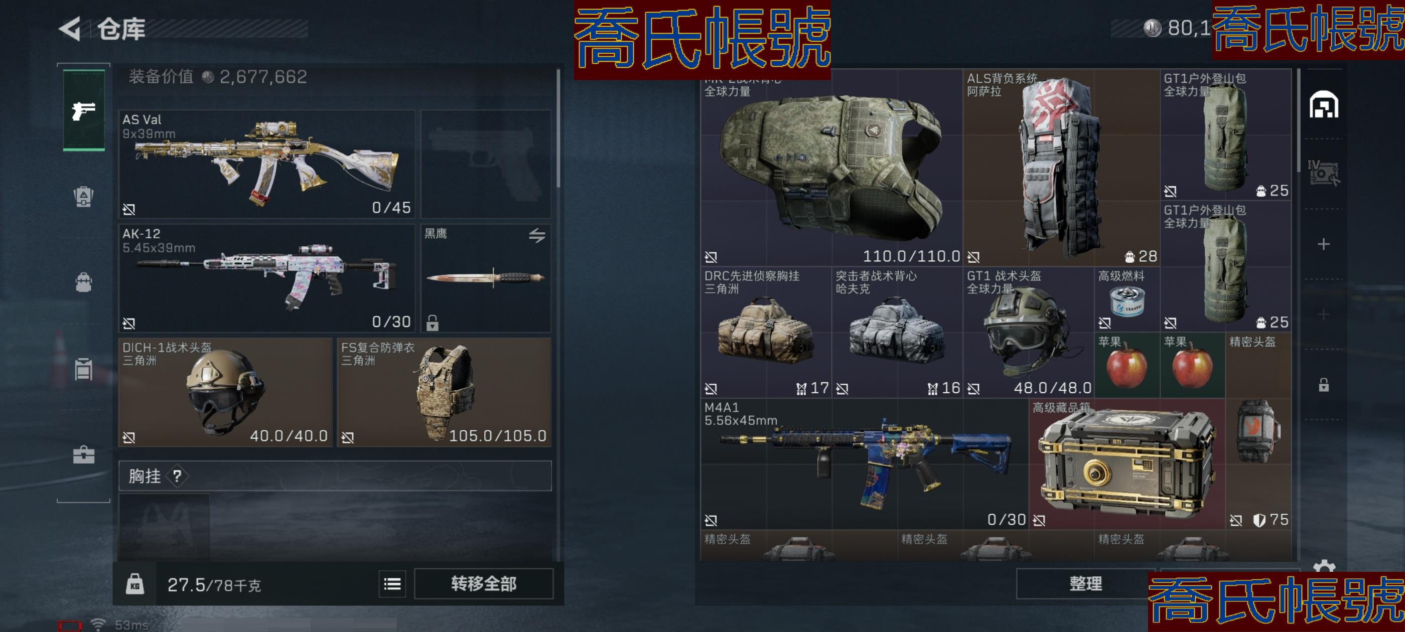 【OBSUUHK197842】總資產:118M,哈夫幣:8000W,武器皮膚:17,烽火44級:青銅,【安全箱】高階安全箱;【特勤處等級】倉庫LV.4,靶場LV.4,訓練中心LV.4;【幹員皮膚】駭爪維什戴爾,紅狼電鋸驚魂;【典藏武器】ASVal突擊步槍-懸賞令(極品B);【近戰武器】近戰武器-黑鷹;【步槍皮膚】ASVal突擊步槍-懸賞令,SCAR-H戰鬥步槍-國風,ASVal突擊步槍-刀鋒,SG552突擊步槍-獵人,SCAR-H戰鬥步槍-啟航,SG552突擊步槍-運動員,ASVal突擊步槍-百步穿楊,G3戰鬥步槍-流沙送葬,K416突擊步槍-冬日風情;【衝鋒槍皮膚】SR-3M緊湊突擊步槍-英雄,Vector衝鋒槍-異域戰爭,Vector衝鋒槍-百步穿楊;【狙擊步槍皮膚】R93狙擊步槍-維什戴爾,M700狙擊步槍-百步穿楊;【輕機槍皮膚】M250通用機槍-寒冬獵手,M250通用機槍-囚徒;【貨幣】三角幣&卷合計:520,(資訊源於賣家釋出,實際資訊以驗號為準)【QQ登入】8000w純幣+一顆心+駭爪紅皮+紅狼電鋸皮+**B懸賞令ASVal
