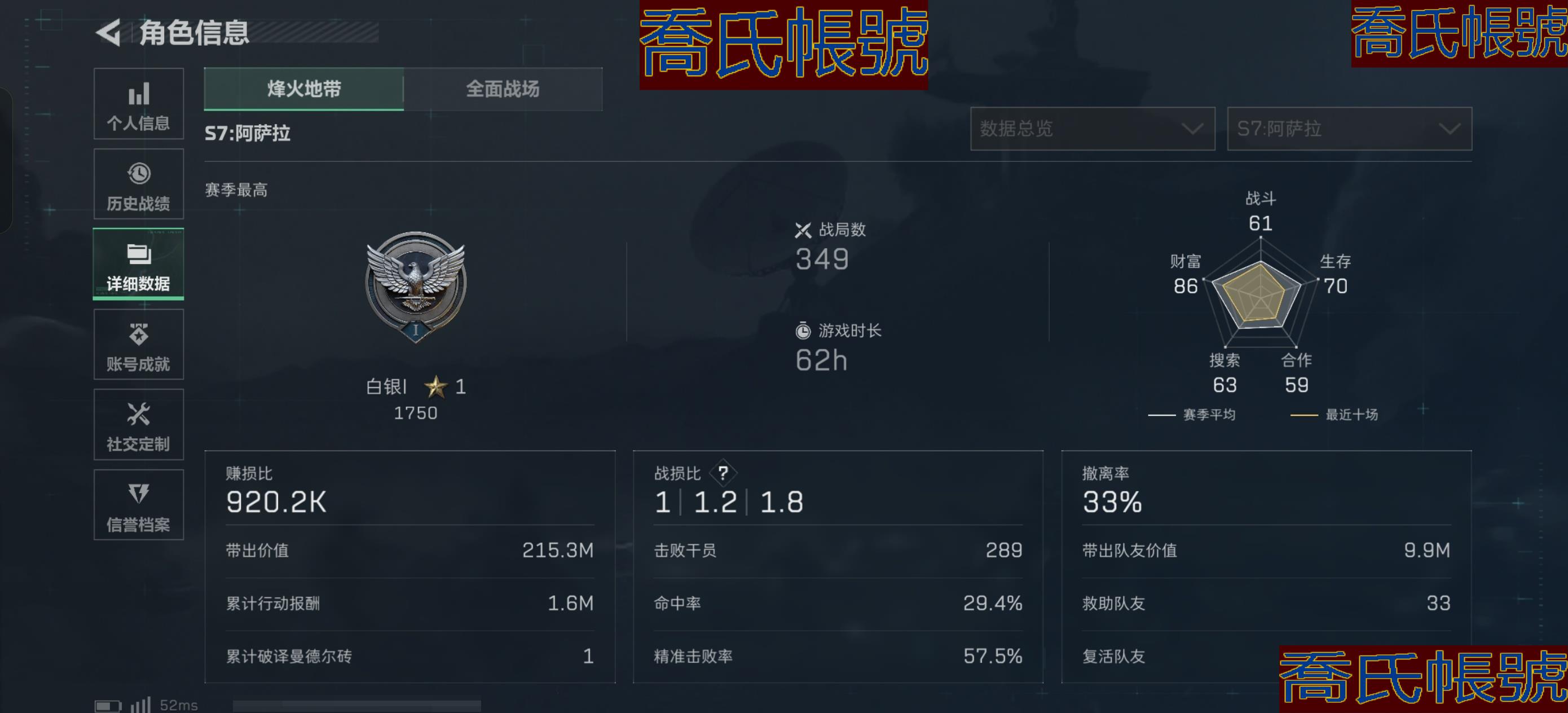 【OBSUUHK028042】總資產:258M,哈夫幣:2864W,武器皮膚:16,烽火60級:白銀,【安全箱】基礎安全箱;【特勤處等級】倉庫LV.9,靶場LV.7,訓練中心LV.7;【幹員皮膚】駭爪維什戴爾,露娜黑天際線,蠱能天使午夜郵差,深藍不破誓約,紅狼電鋸驚魂;【步槍皮膚】KC17突擊步槍-電鋸驚魂,CAR-15突擊步槍-阿米婭,M4A1突擊步槍-阿米婭,AK-12突擊步槍-特斯拉線圈,SG552突擊步槍-運動員,騰龍突擊步槍-撈點薯條,ASh-12戰鬥步槍-鵝鴨殺;【衝鋒槍皮膚】Vector衝鋒槍-能天使-午夜郵差,勇士衝鋒槍-能天使-午夜郵差,UZI衝鋒槍-特斯拉線圈,QCQ171衝鋒槍-鵝鴨殺;【狙擊步槍皮膚】R93狙擊步槍-維什戴爾,AWM狙擊步槍-撈點薯條;【輕機槍皮膚】M250通用機槍-騎士之心,QJB201輕機槍-鵝鴨殺;【手槍皮膚】93R-撈點薯條;(資訊源於賣家釋出,實際資訊以驗號為準)【QQ登入】總資產241m/聯動三姐妹/深藍不破/無題蜂醫/電鋸狼/體力負重滿級/