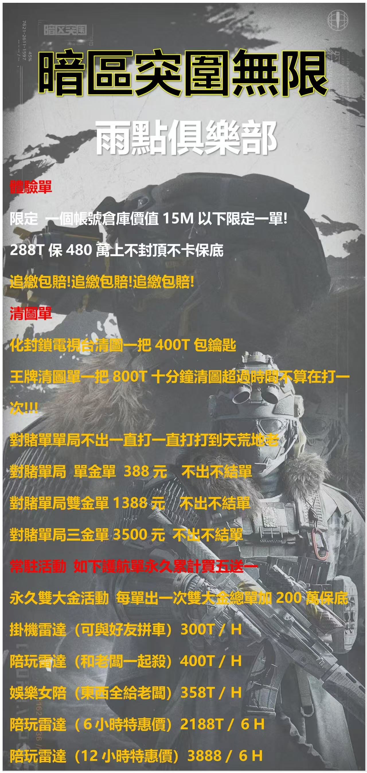 其他 💧雨點電競俱樂部💧暗區突圍PC國際專業護航💯全網最低價🈵效率服務一應俱全