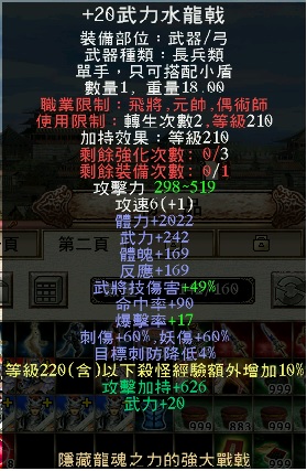 【小資武器】 +20水龍戟(次數1/0)會幫轉生到好。