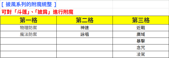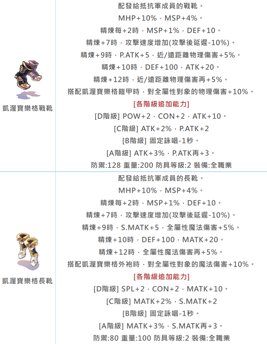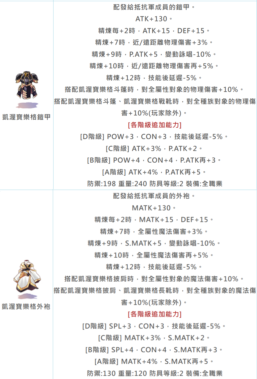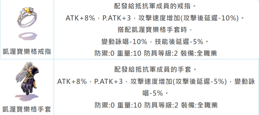 物理系 (戒指/手套) | ATK+16%, P.ATK+6 | 攻速延遲-15%、變詠-15%、技後延遲-5% |