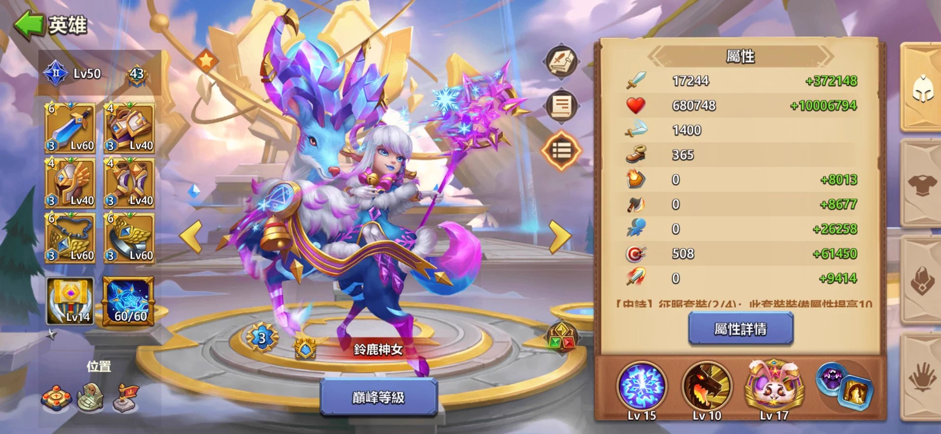 城堡爭霸台服成品號,150w戰力,6龍二覺鹿女+愛麗絲,聖物6.2雞,寶石12w,重生飾品1套,雙子1套,,英雄卡多,物品配件全,僅綁定手機通行證,秒換