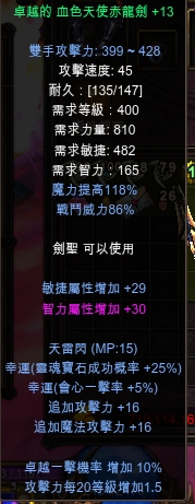 道具 魔劍----售 +13(自選)幸運憤怒角等400赤龍血劍