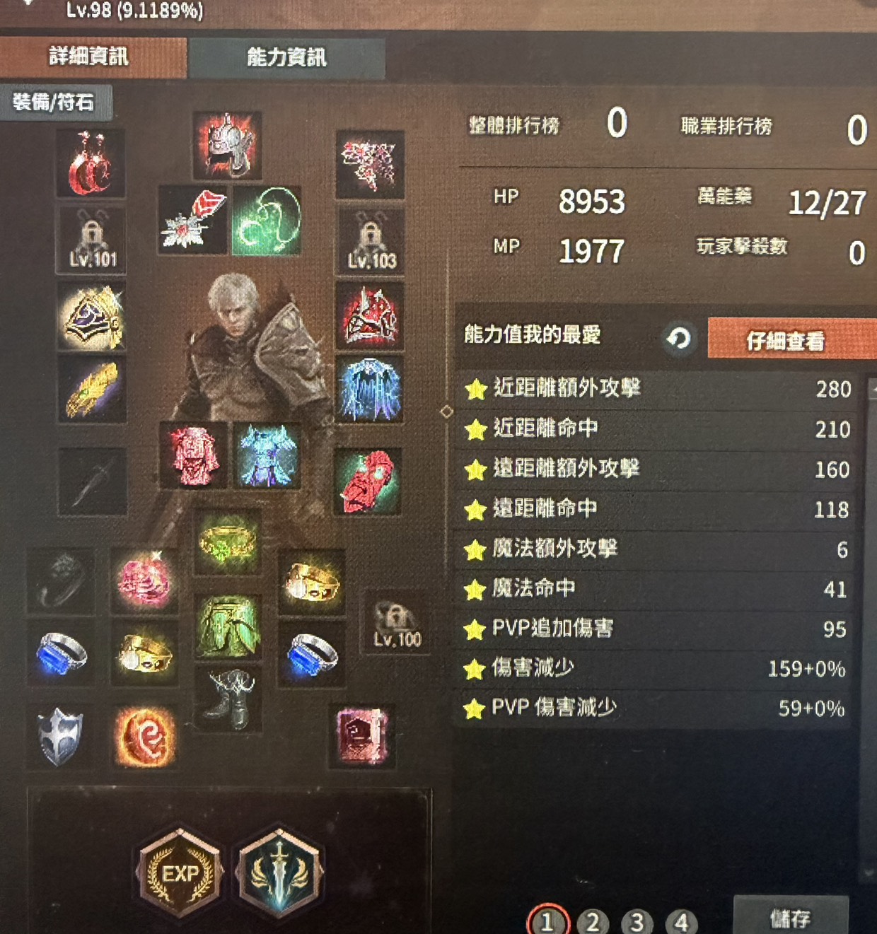 帳號 98+12劍士 瞬終 撕裂 輓歌已學同G法師98+15