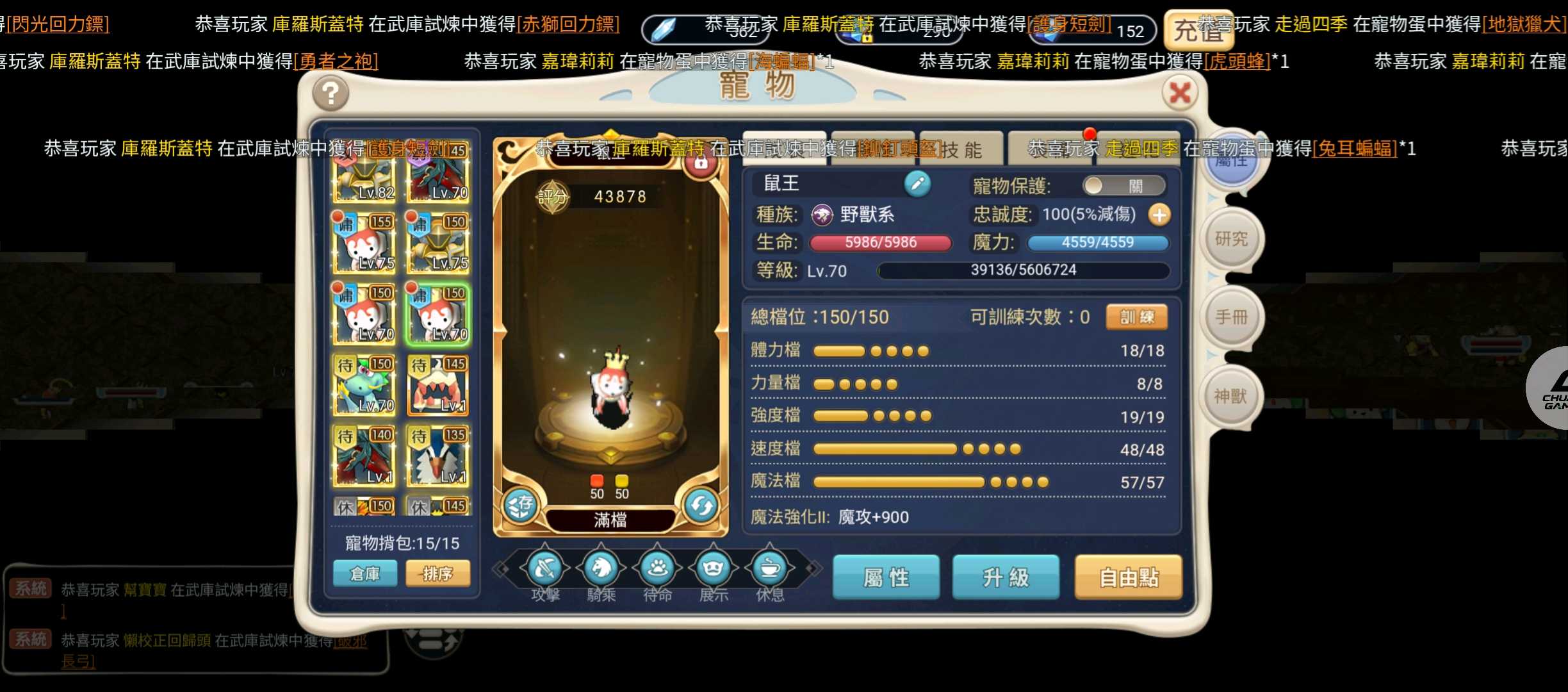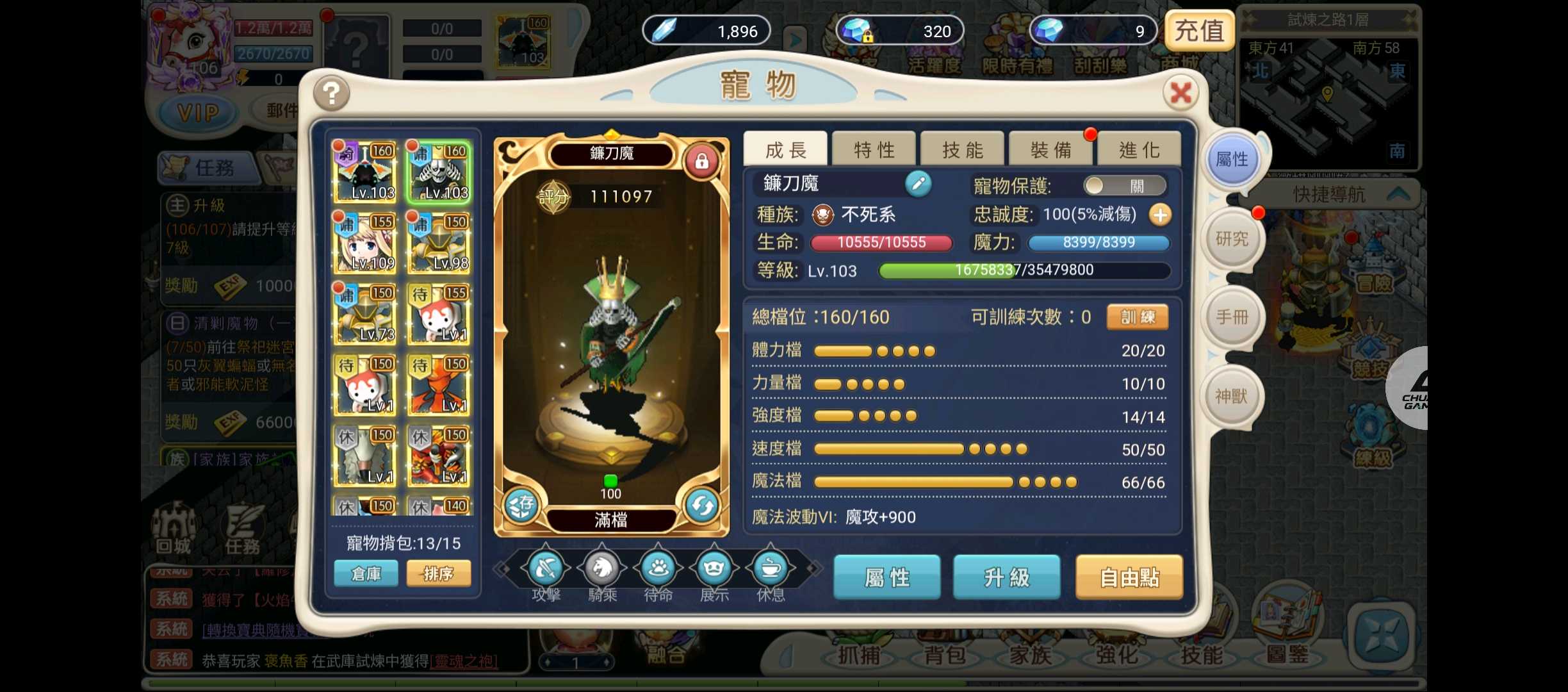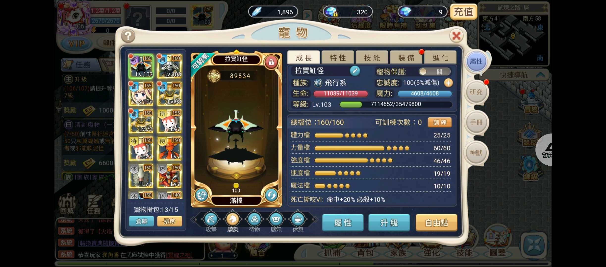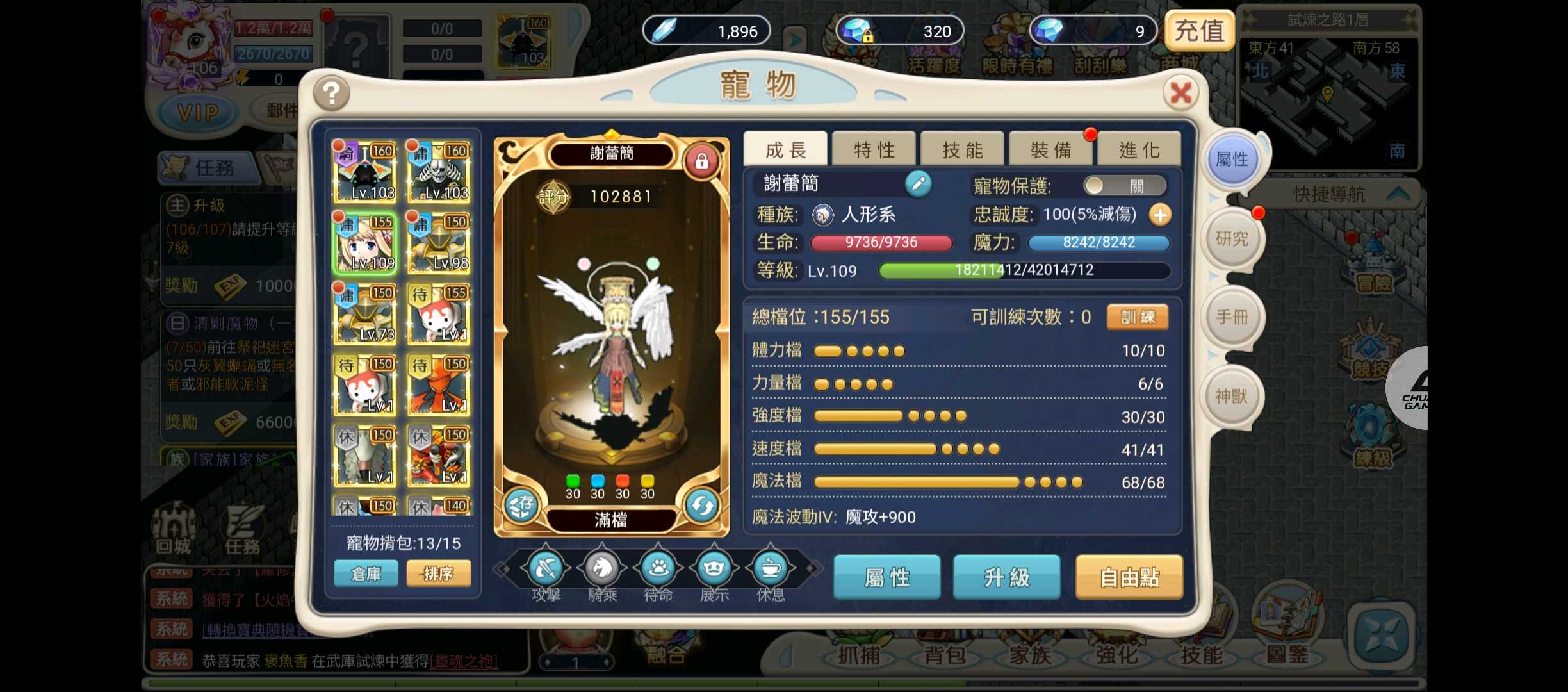 雙子1 110級格鬥(持續進度中)160魟魚 160鐮刀魔 150滿檔天使2隻 155謝雷簡 155滿檔鼠王1隻 150滿檔寵1隻 155滿檔寵2隻 (價格可談)