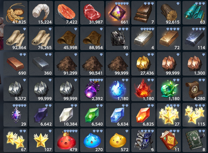 養成資源 : 如圖上,比較重要的女神26顆、古代水晶800顆、強化粉末130w、煉製水晶17000個