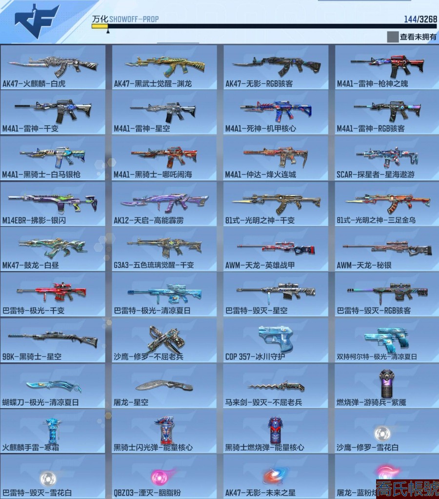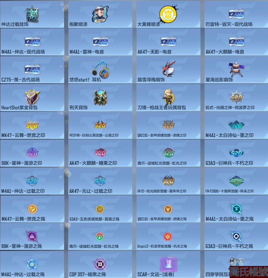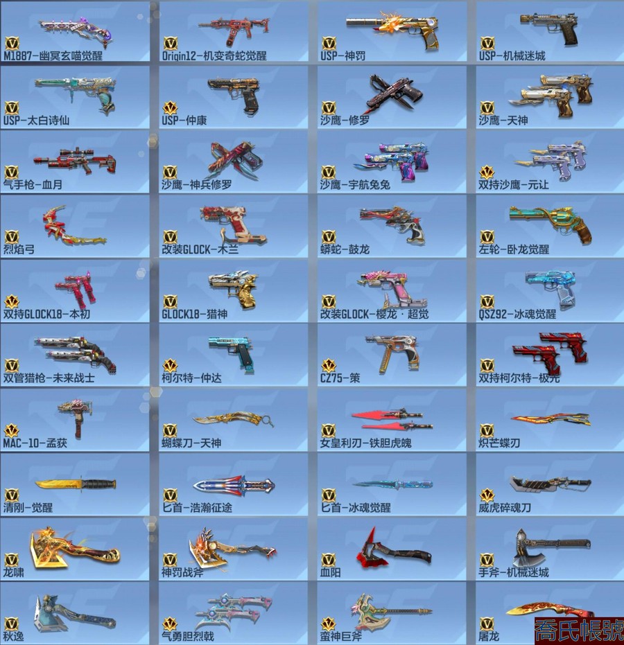 【OBCCINO439542】VIP5,王者武器11,英雄級武器163,萬化144,角色29 【王者武器】:王者之影/王者之蝶/M12S-雷霆王者/王者之霆/王者之競手雷/王者之勢閃光彈/王者之獸閃光彈/王者之競閃光彈/王者之影煙霧彈/王者之競煙霧彈/王者之獸煙霧彈 ;【熱門皮膚】:火麒麟手雷-寒霜/馬來劍-毀滅-不屈老兵/蝴蝶刀-極光-清涼夏日/M4A1-雷神-星空/M4A1-黑騎士-白馬銀槍/M4A1-雷神-RGB駭客/AWM-天龍-英雄戰甲/巴雷特-極光-清涼夏日/M4A1-死神-機甲核心/黑騎士閃光彈-能量核心/M4A1-雷神-槍神之魄/81式-光明之神-三足金烏/沙鷹-修羅-不屈老兵/雙持柯爾特-極光-清涼夏日/AK47-火麒麟-白虎/巴雷特-毀滅-星空/屠龍-星空/巴雷特-極光-千變 ;【熱門武器】:AK47-火麒麟/AK47-血武士/AK47-黑鯊/AK47-無影/AK47-木蘭/AK47-破空冰刃/AK47-死神/AK47-雅韻青花/AK47-輪迴/AK47-塔羅牌覺醒/AK47-謎城煙火/M4A1-死神/M4A1-黑騎士/M4A1-星象/M4A1-雷神/M4A1-海騎士/M4A1-仲達/M4A1-龍血/M4A1-運輸船/M4A1-鐵膽虎魄/SCAR-幽暗騎士/M4A1-太白詩仙/SCAR-心動 PICK/SCARLight-白虎/劍齒虎-炫彩/M4A1-夏清覺醒/SCAR-探星者/9A91-天神/XM8-湮滅/AN94-蓋/AK12-天啟/QBZ03-金色薔薇/AN94-精衛填海/M14EBR-葫蘆山莊/M14EBR-拂影/HK416-極光/HK417-朱雀/HK417-炎龍鎧甲/QBZ19-天使/AK103-湮滅/QBZ03-死神/MK47-仁德/MK47-雲舞/MK47-鼓龍/QBZ97-浩瀚征途/G3A3-五色琉璃覺醒/AWM-天龍/AWM-大灣溢彩/巴雷特-毀滅/巴雷特-極光/98K-黑騎士/AWM-指南針覺醒/98K-星神/M200-幻神/MK5-機械紀元/加特林-煉獄/加特林-堡壘/湯姆遜-烈龍/王者之蝶/CZS2-仲康/CBJ-MS-毒蜂/M12S-天公/KSG-孟獲/KSG-鍾馗覺醒/M1887-幽冥玄喵覺醒/USP-仲康/USP-太白詩仙/雙持沙鷹-元讓/烈焰弓/雙持GLOCK18-本初/QSZ92-冰魂覺醒/雙管獵槍-未來戰士/CZ75-策/柯爾特-仲達/MAC-10-孟獲/蝴蝶刀-天神/匕首-冰魂覺醒/威虎碎魂刀/蠻神巨斧/氣勇膽烈戟/幻靈之鋒/思召劍/烈焰刀 ;【英雄角色】:零水下麗影/零新生/熾天使X/救世主X/九安X ;【稀有道具】:M4A1-仲達-現代戰場/巴雷特-毀滅-現代戰場/M4A1-仲達-過載之音/CZ75-策-古代戰場/AK47-元讓-過載之音/M4A1-雷神-電音/AK47-火麒麟-電音/AK47-無影-電音/消滅音效-8bit/消滅音效-斬殺/消滅音效-炎龍鎧甲/消滅音效-過載/消滅音效-能量核心/狙擊槍線-江東駭虎/98K-星神-漫遊之線 ;【英雄武器包含數量可能含有時效性武器,具體以截圖內實際擁有為主】VIP5,王者武器11,英雄級武器162,萬化143,角色28 【王者武器】:王者之影/王者之蝶/M12S-雷霆王者/王者之霆/王者之競手雷/王者之獸閃光彈/王者之勢閃光彈/王者之影煙霧彈/王者之競閃光彈/王者之獸煙霧彈/王者之競煙霧彈 ;【熱門皮膚】:81式-光明之神-三足金烏/M4A1-黑騎士-白馬銀槍/黑騎士閃光彈-能量核心/G3A3-五色琉璃覺醒-千變/AK47-火麒麟-白虎/沙鷹-修羅-不屈老兵/巴雷特-極光-清涼夏日/M4A1-死神-機甲核心/蝴蝶刀-極光-清涼夏日/屠龍-星空/M4A1-雷神-星空/雙持柯爾特-極光-清涼夏日/M4A1-雷神-槍神之魄/火麒麟手雷-寒霜/馬來劍-毀滅-不屈老兵/巴雷特-毀滅-星空/M4A1-雷神-RGB駭客/AWM-天龍-英雄戰甲 ;【熱門武器】:AK47-火麒麟/AK47-血武士/AK47-無影/AK47-破空冰刃/AK47-輪迴/AK47-木蘭/AK47-死神/AK47-謎城煙火/AK47-塔羅牌覺醒/M4A1-雷神/AK47-雅韻青花/M4A1-仲達/M4A1-死神/M4A1-星象/M4A1-龍血/M4A1-海騎士/M4A1-黑騎士/M4A1-運輸船/M4A1-夏清覺醒/SCAR-幽暗騎士/M4A1-鐵膽虎魄/M4A1-太白詩仙/SCARLight-白虎/劍齒虎-炫彩/SCAR-心動 PICK/AN94-精衛填海/SCAR-探星者/9A91-天神/XM8-湮滅/****-拂影/AK12-天啟/AN94-蓋/QBZ03-金色薔薇/QBZ03-死神/****-葫蘆山莊/AK103-湮滅/HK417-炎龍鎧甲/QBZ19-天使/HK416-極光/HK417-朱雀/MK47-仁德/MK47-雲舞/MK47-鼓龍/G3A3-五色琉璃覺醒/QBZ97-浩瀚征途/AWM-天龍/AWM-指南針覺醒/巴雷特-極光/M200-幻神/巴雷特-毀滅/AWM-大灣溢彩/98K-星神/加特林-堡壘/98K-黑騎士/MK5-機械紀元/加特林-煉獄/湯姆遜-烈龍/CBJ-MS-毒蜂/王者之蝶/CZS2-仲康/M12S-天公/KSG-孟獲/****-幽冥玄喵覺醒/USP-太白詩仙/USP-仲康/雙持沙鷹-元讓/烈焰弓