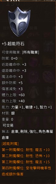 4洞+5超能符石(龍言耐性+10恐怖耐性+10龍言耐性+15反擊)