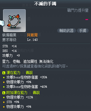 道具 【不滅的手鐲】 主潛能75%B9%物附加21%物9%力阿戴爾副武器7999不實收