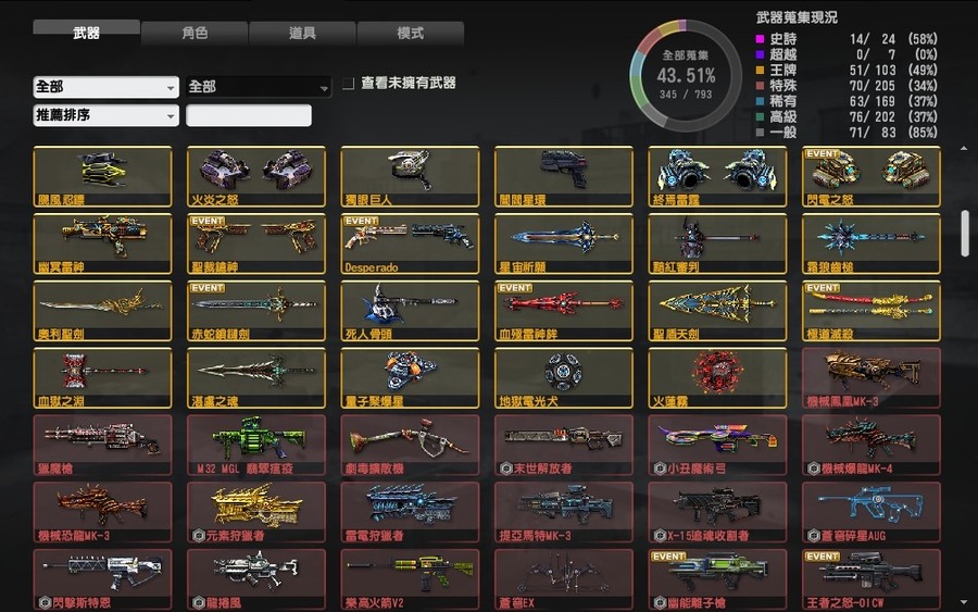 【14史詩武器、51王牌武器、38王牌角色】神仙四件套 蛇神 天穹 戰戟 天罰 資源多多