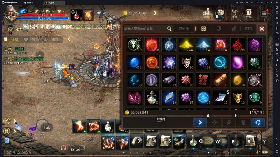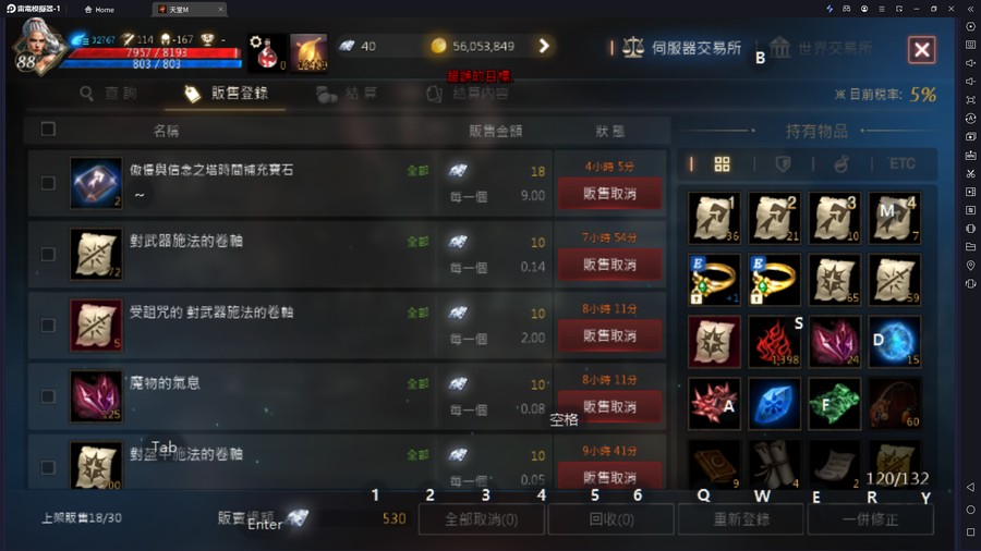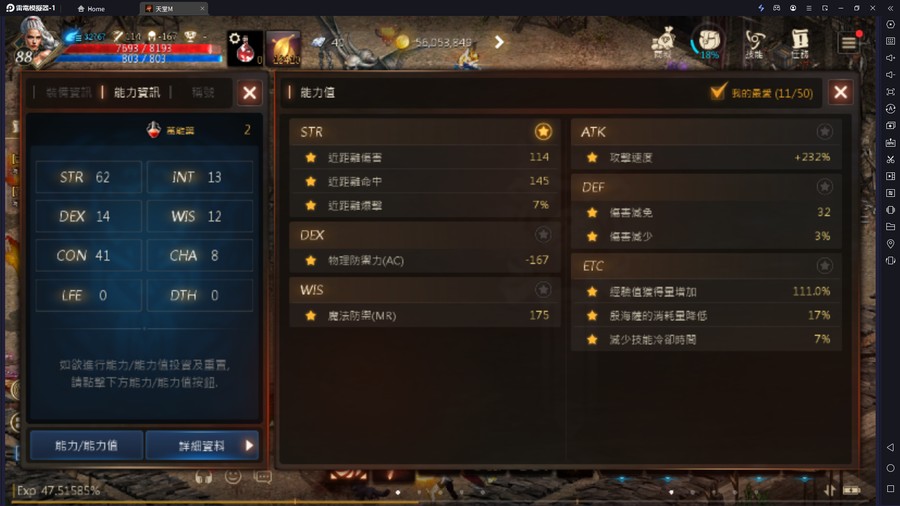 本尊職業:狂戰士 88等47%,其餘請看圖