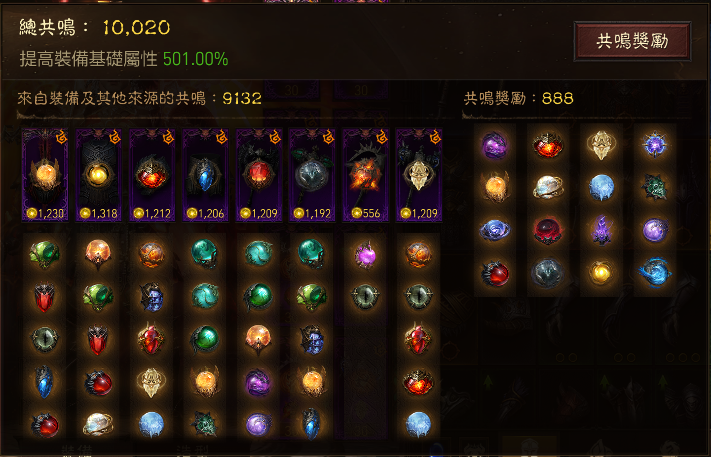 小寶石全部LV9,其中一顆紅寶石LV10 如圖