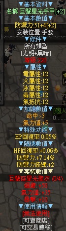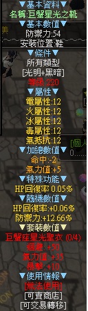 道具 巨蟹星光整套 超高迴避+高防禦+迴避流必備 整套 難蒐集 220等即可穿 高cp