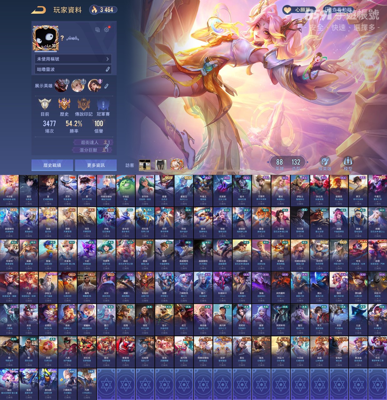 帳號 【Garena帳有綁定、璀璨傳說、V8、88英、132造】 單信箱整組給,卡芬妮比洛爾等多新年,多聯動潘因釘崎,柯南基德整套