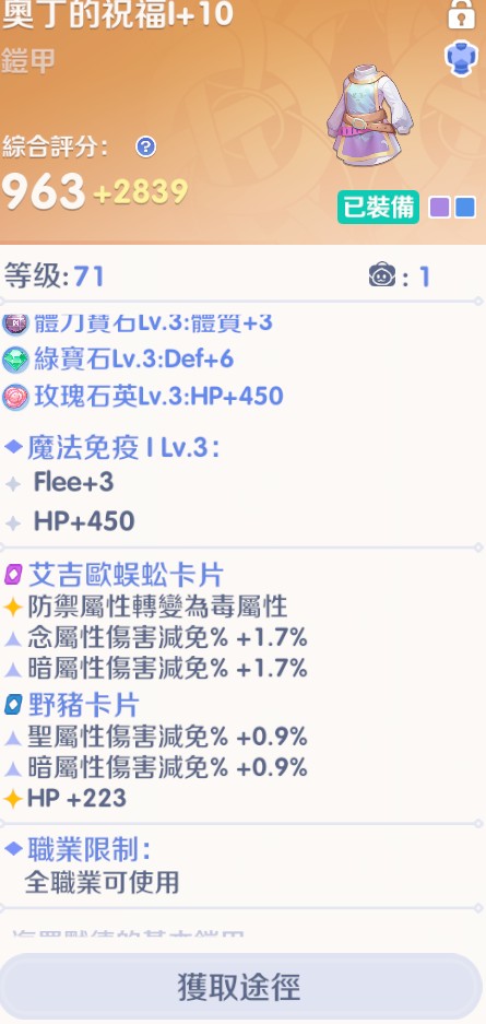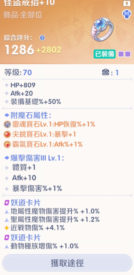 裝備評分可高可低