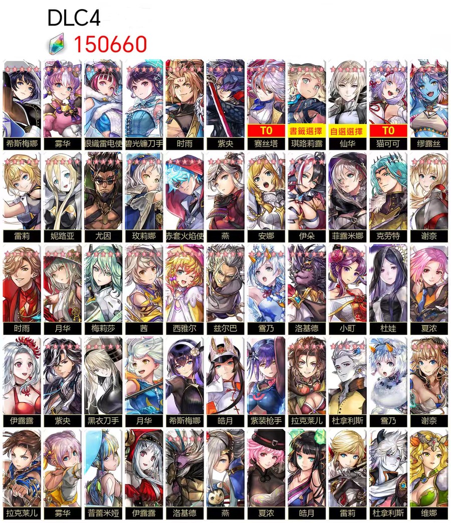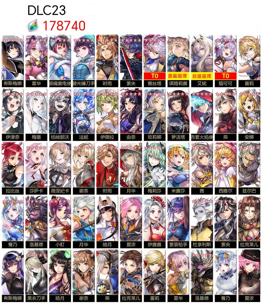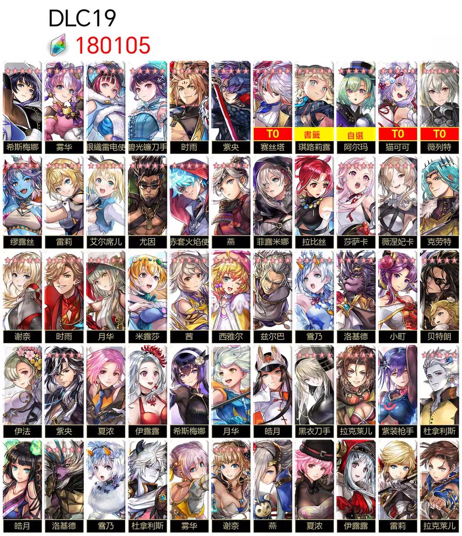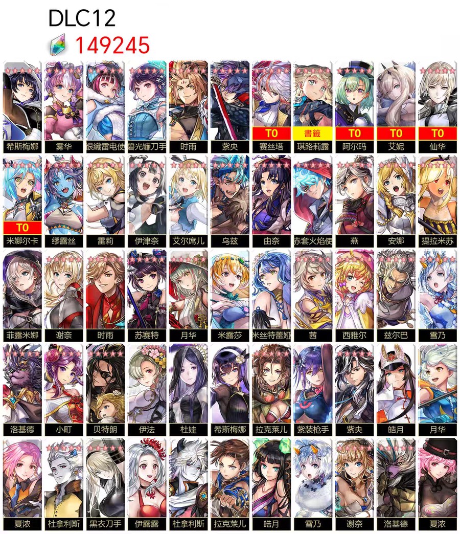 圖片中標示為 T0 的角色,代表該角色已實際抽到並存在於帳號中。