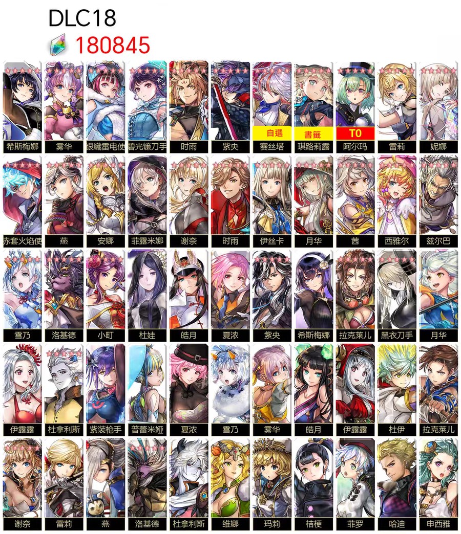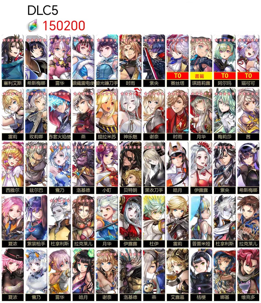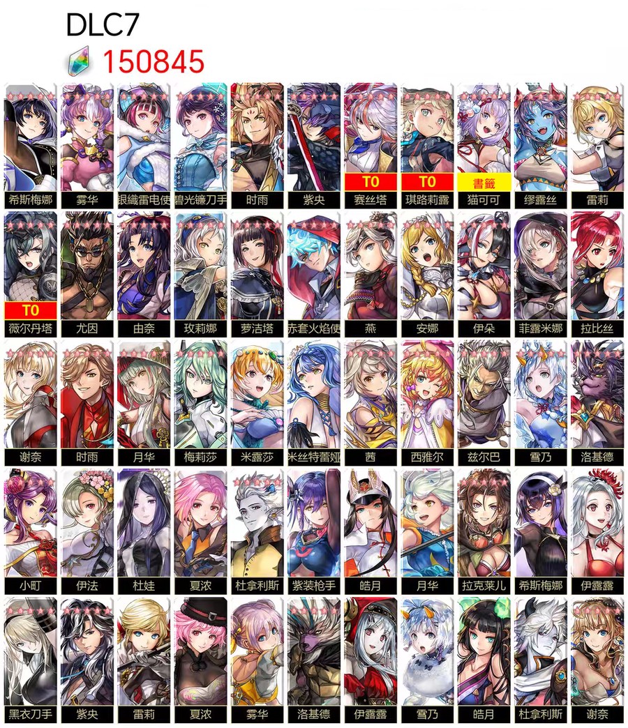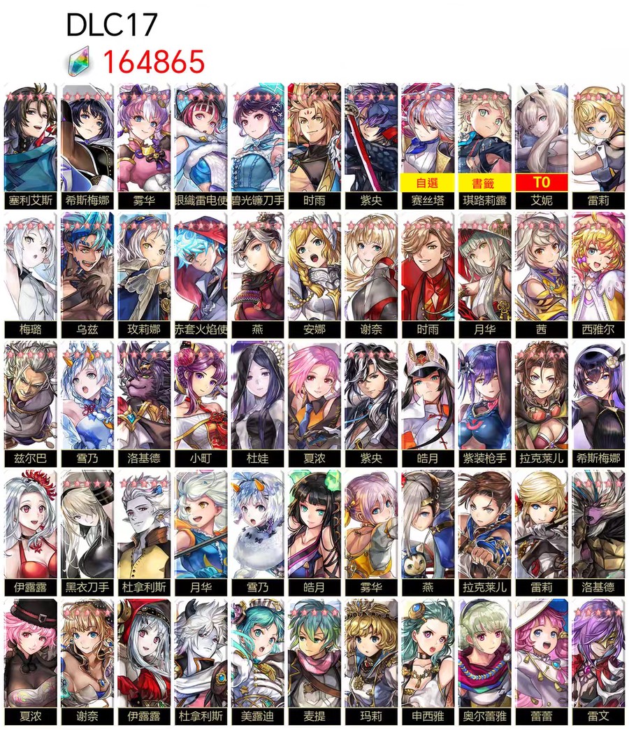 圖片中標示為 T0 的角色,代表該角色已實際抽到並存在於帳號中。