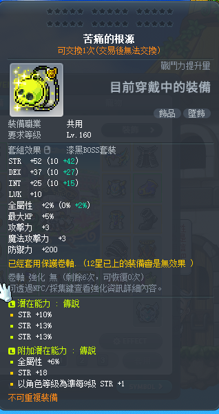 道具 【苦痛的根源】 36%力附加6%全9+1力18力苦痛的根源 / 雙傳漆黑裝 / 劍士 海盜用