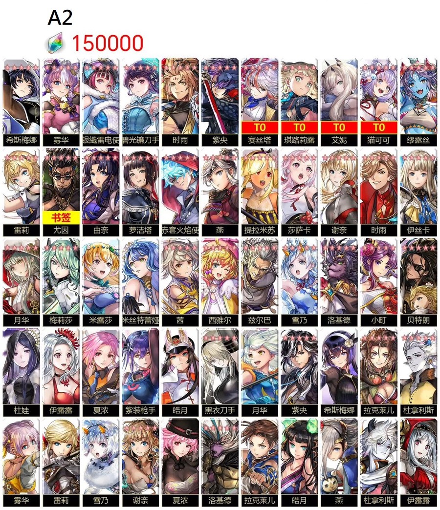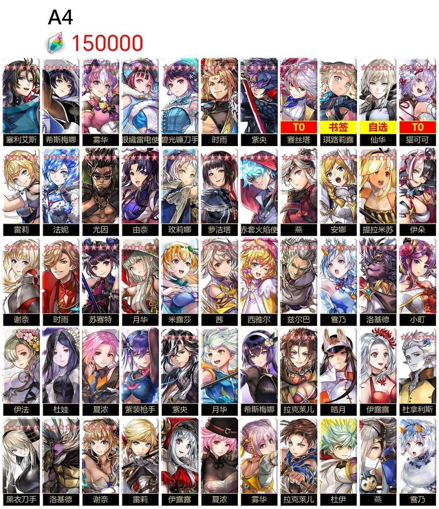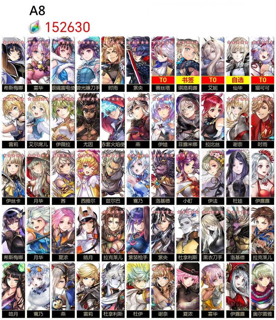| A8 | AS賽絲塔+仙華+艾妮+艾爾席兒+琪路莉露+15萬鑽 | 3000 |