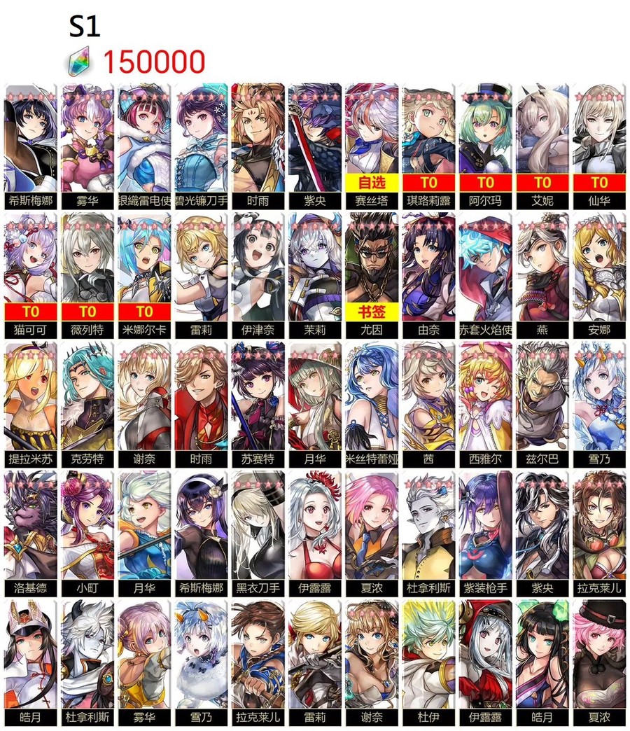 | S2 | AS賽絲塔+仙華+米娜爾卡+艾妮+琪路莉露+15萬鑽 | 5000 |